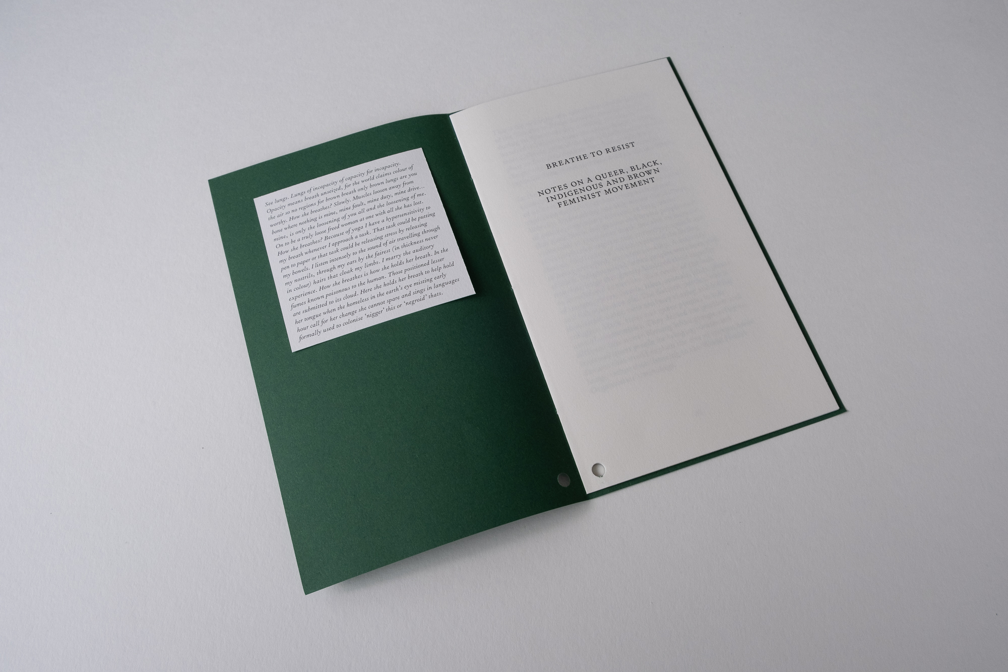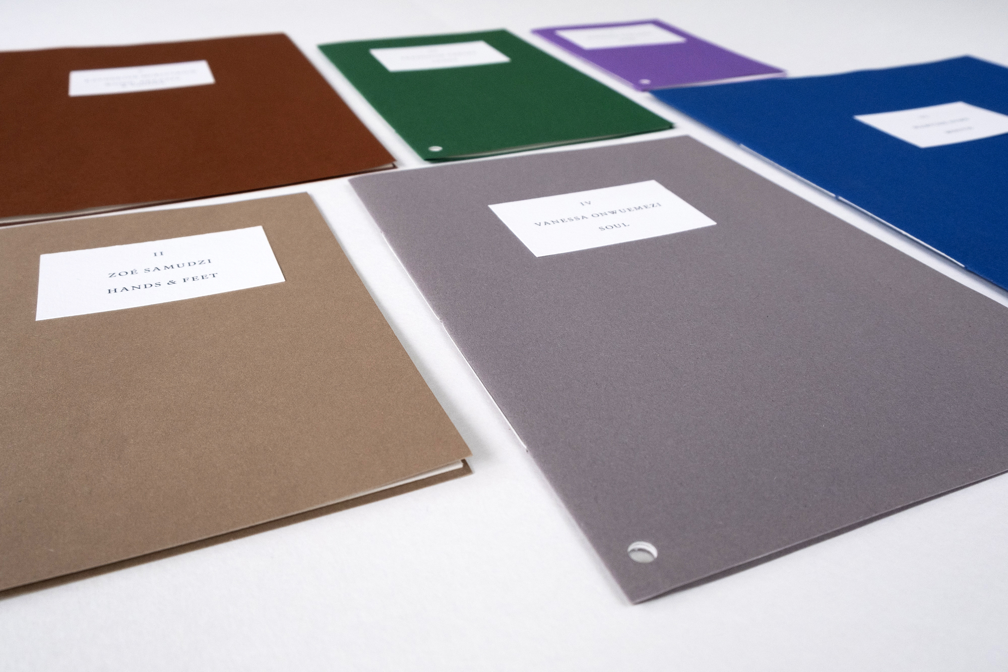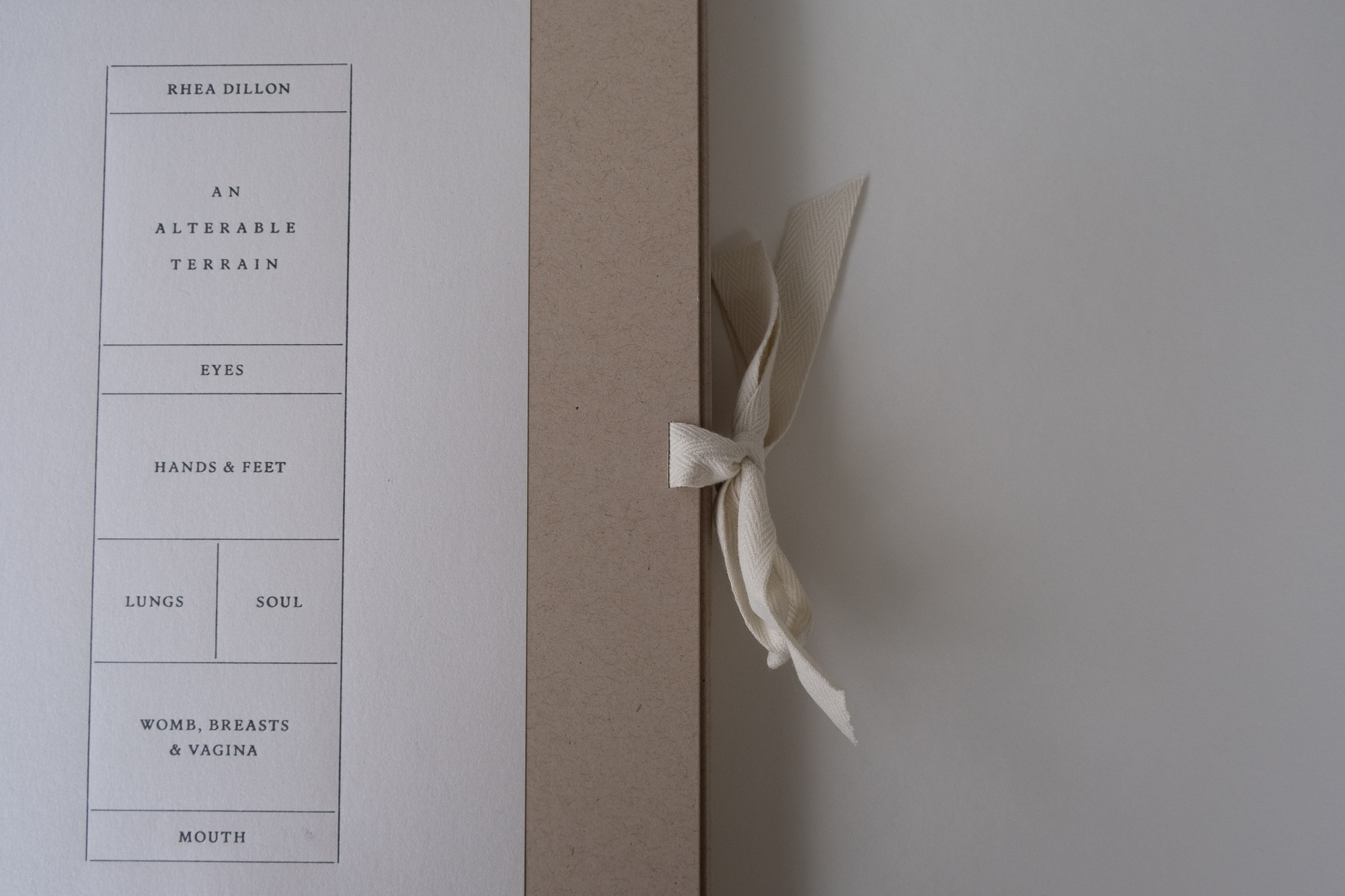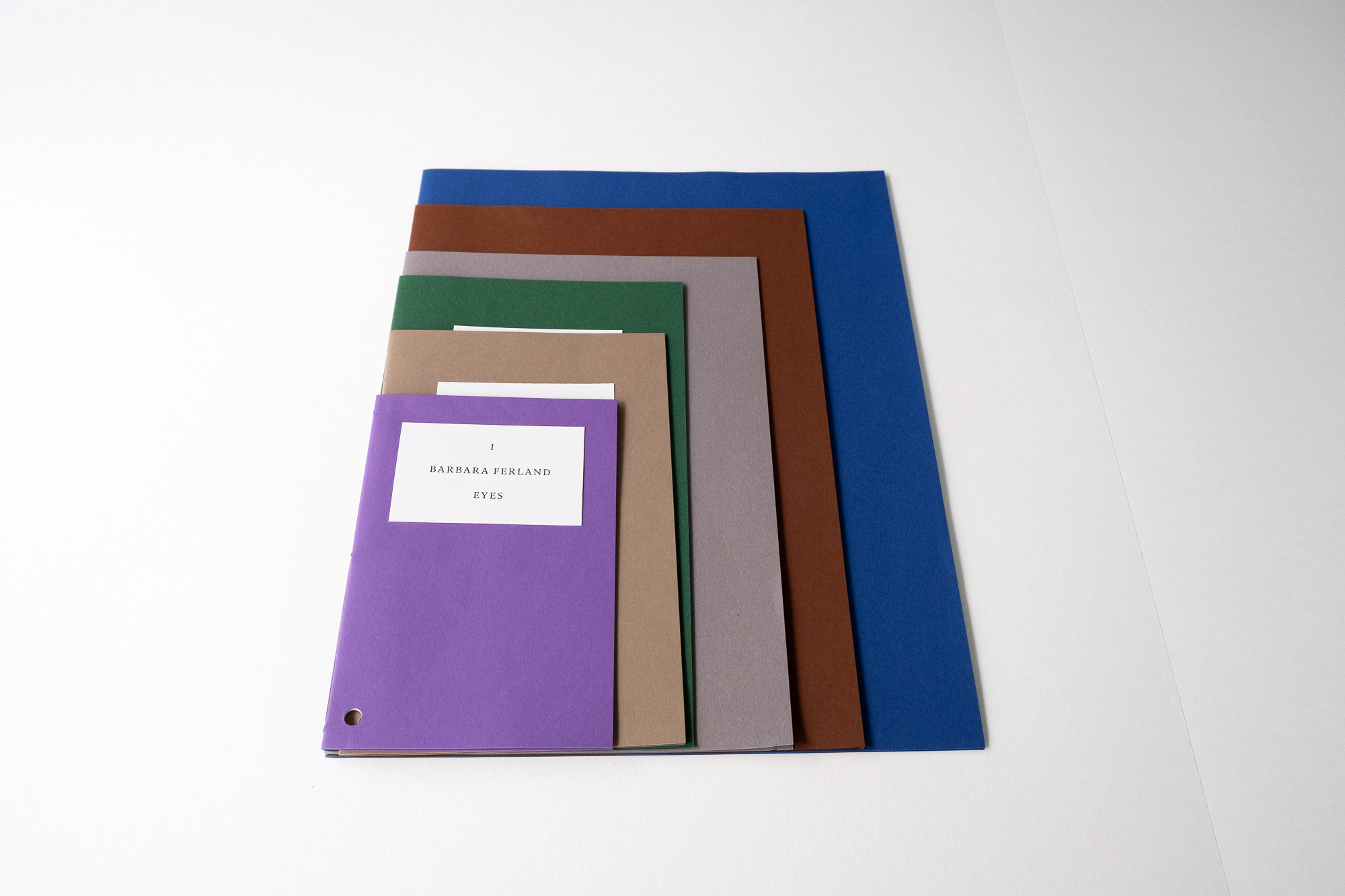 An artists’ edition created for the Tate Gallery consisting of six different pamphlets and prints contained inside a folding box. The books were held together with a screw post that fed through the bottom corner and secured by the bottom edge flap. The folding box has a letterpress printed label mounted on the front cover.