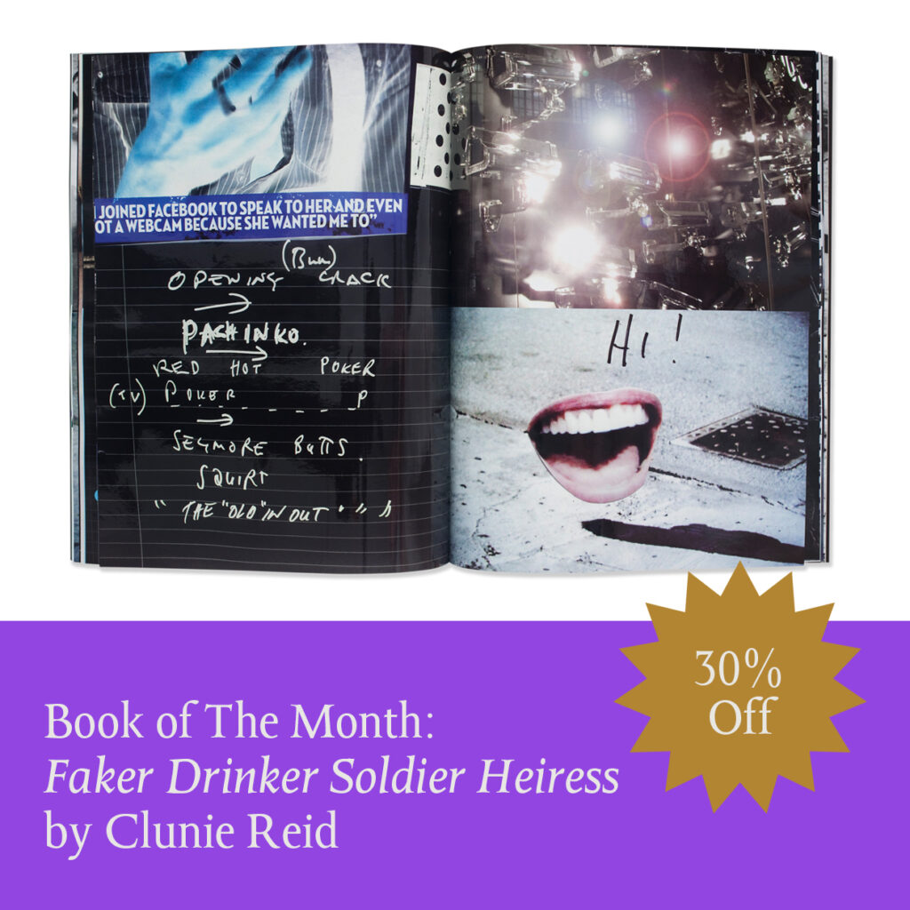 Our February Book of the Month, with 30% off, is Clunie Reid’s Faker Drinker Soldier Heiress (2010).