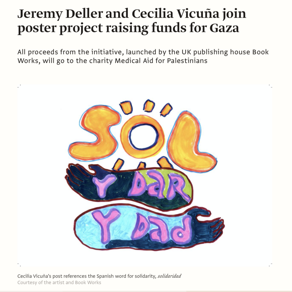 The Art Newspaper has published a feature by Henry Broome on our poster project for Palestine, What Did You Do….(2024), raising funds for Medical Aid for Palestinians. The series now features 17 posters, including recent additions by: Prem Sahib; Joanna Tatham and Tom O’Sullivan; and Marcus Coates.