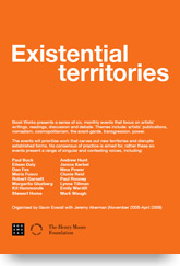 Scanned version of the invitation produced for the Existential Territories series of talks that ran from the end of 2008 into 2009.