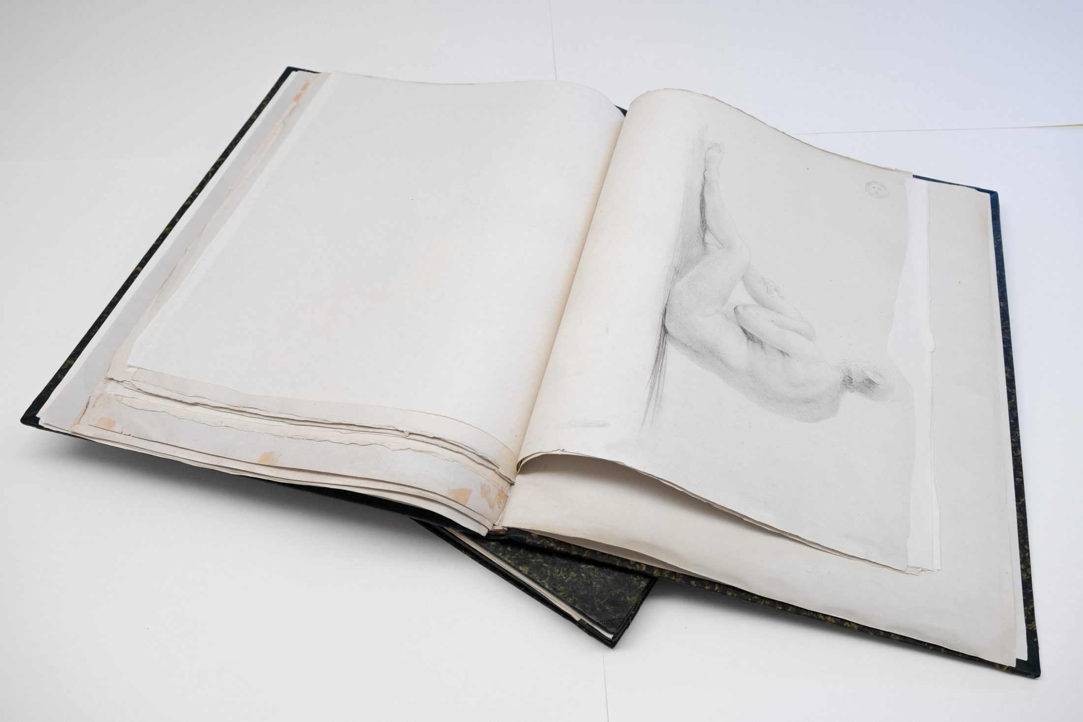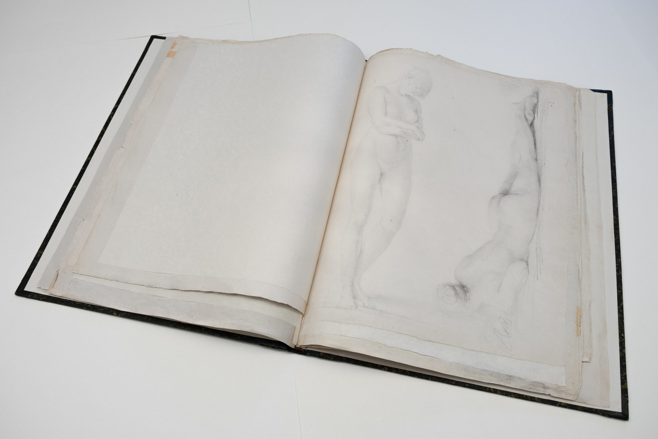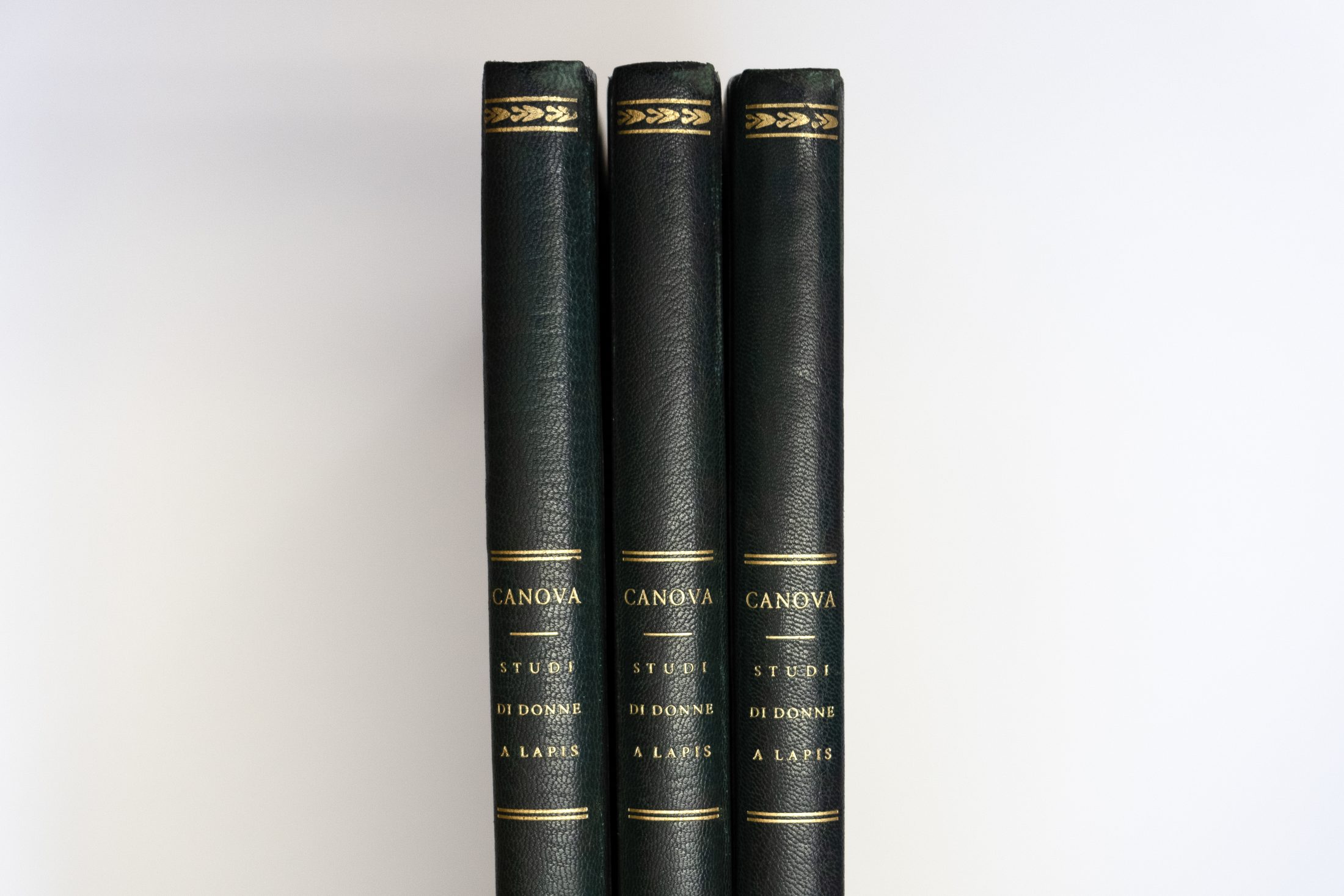Facsimiles of two different Antonio Canova sketchbooks produced in a small edition. All the work in the books were produced to faithfully replicate the original works. The facsimile pages have been printed onto paper by Factum Arte with the same textural qualities as the originals. The leather bound covers with paste paper sides are an exact replica of the binding that held Canova’s drawings.