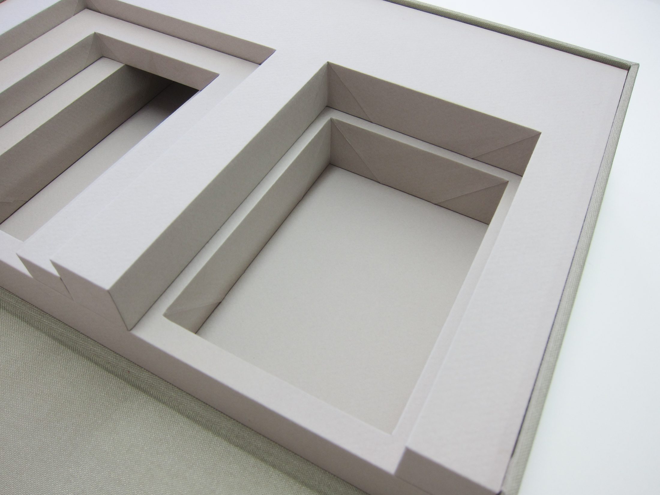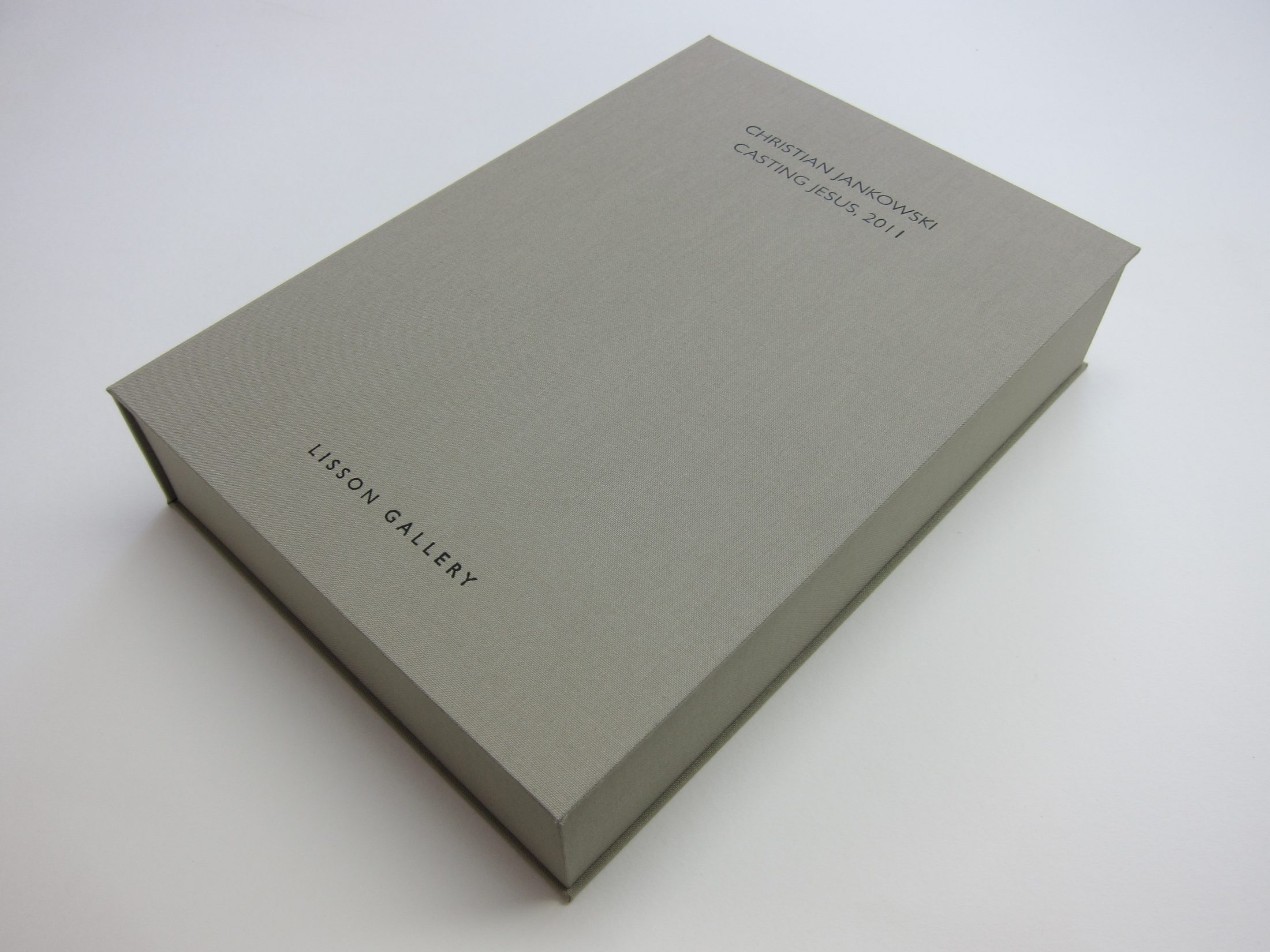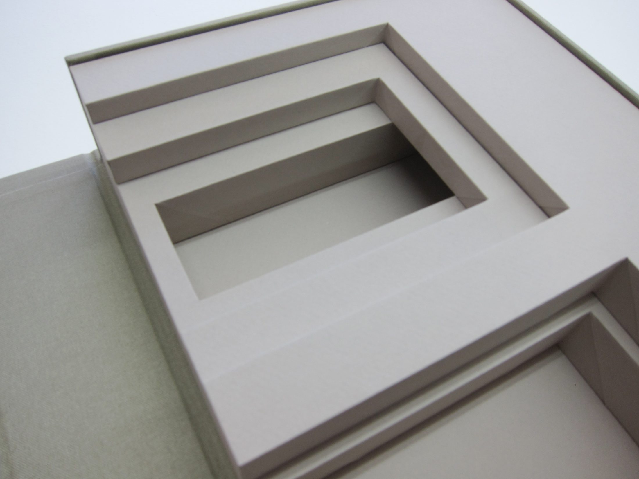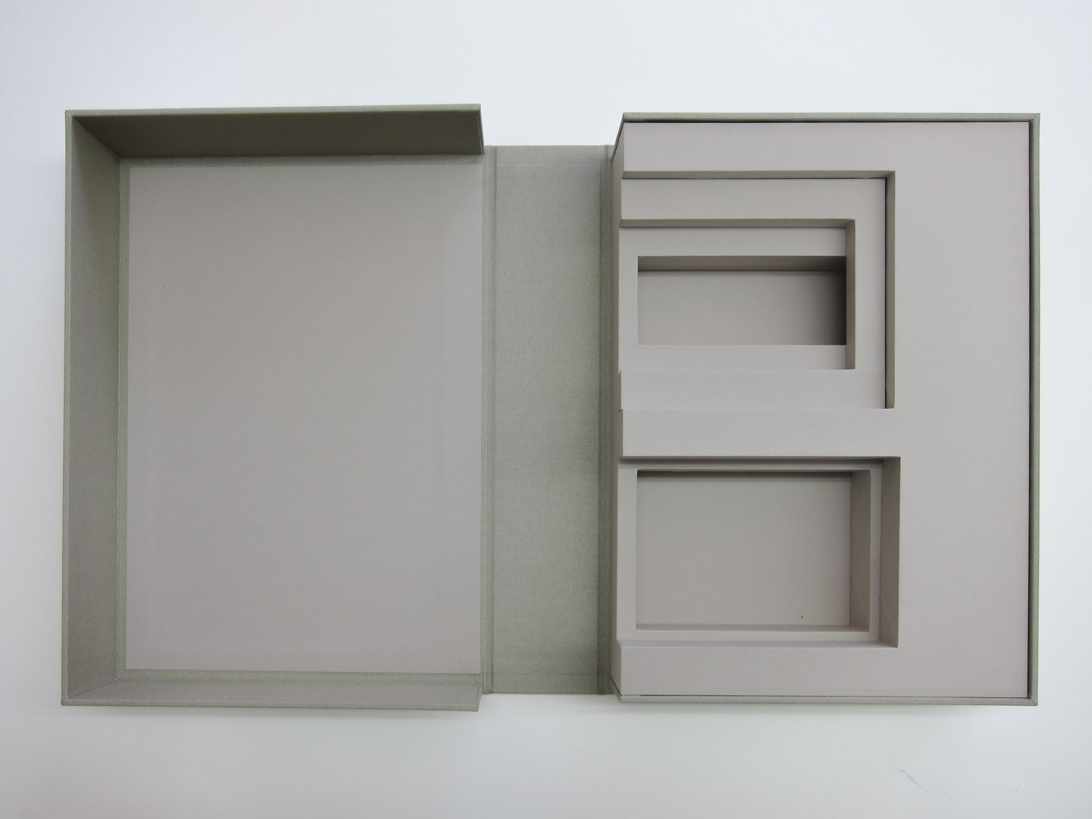 A solander box to contain various digital devices for an artwork produced for Lisson Gallery. The box is cloth covered on the outside with a specially created paper covered interior to hold the contents. The title is foil blocked on the front cover and spine.