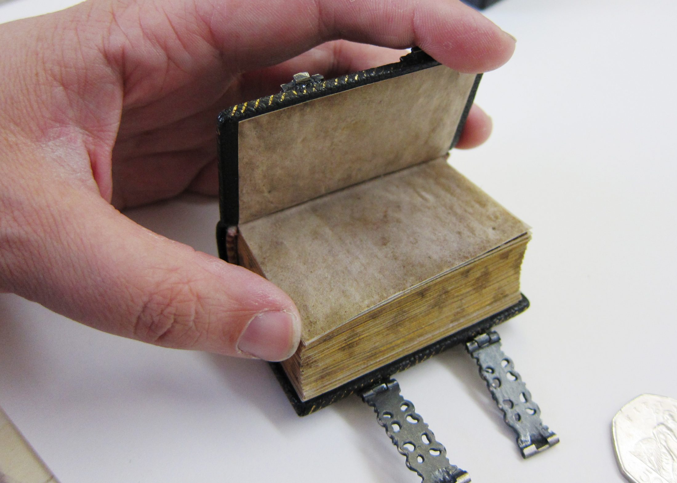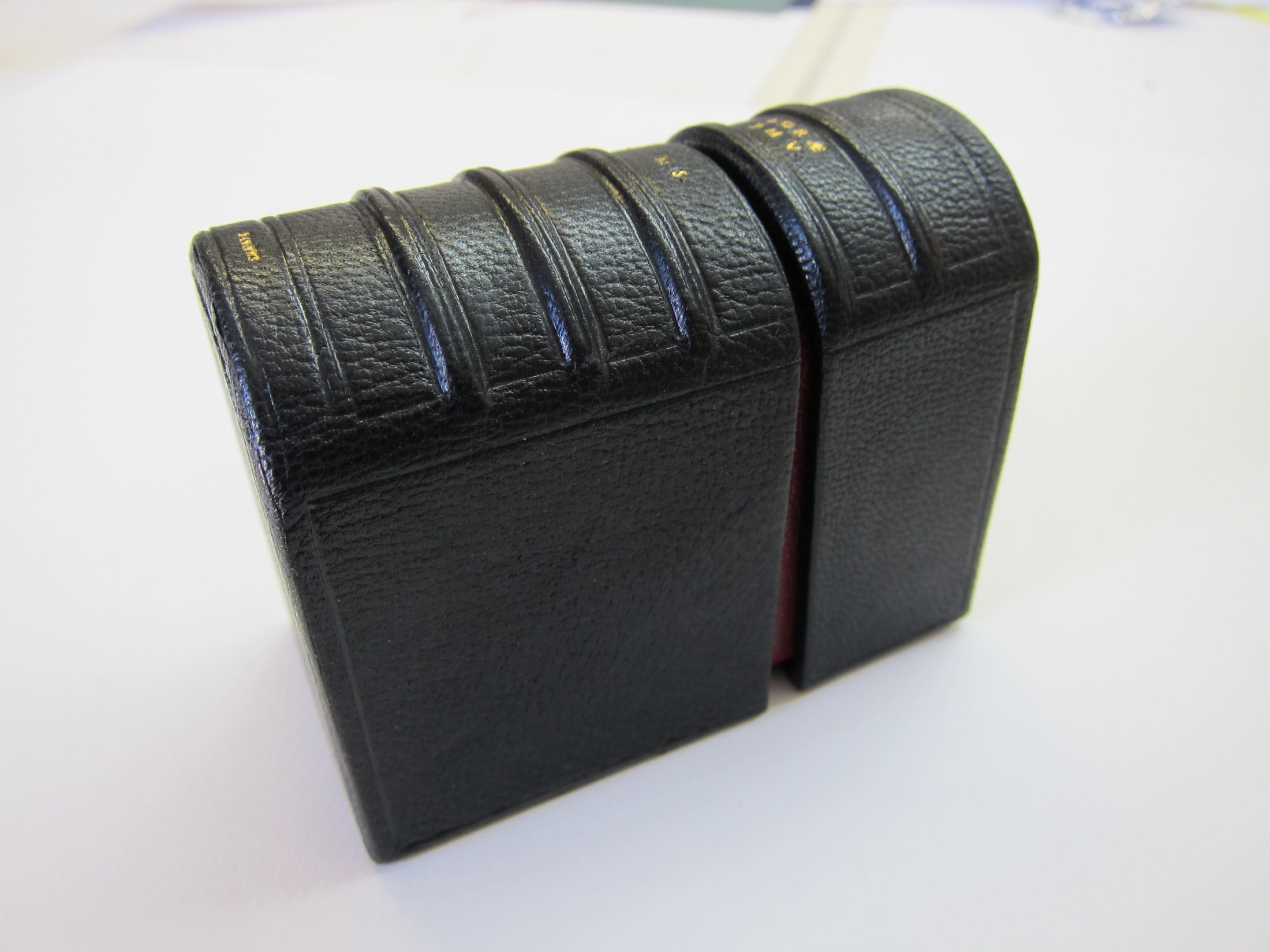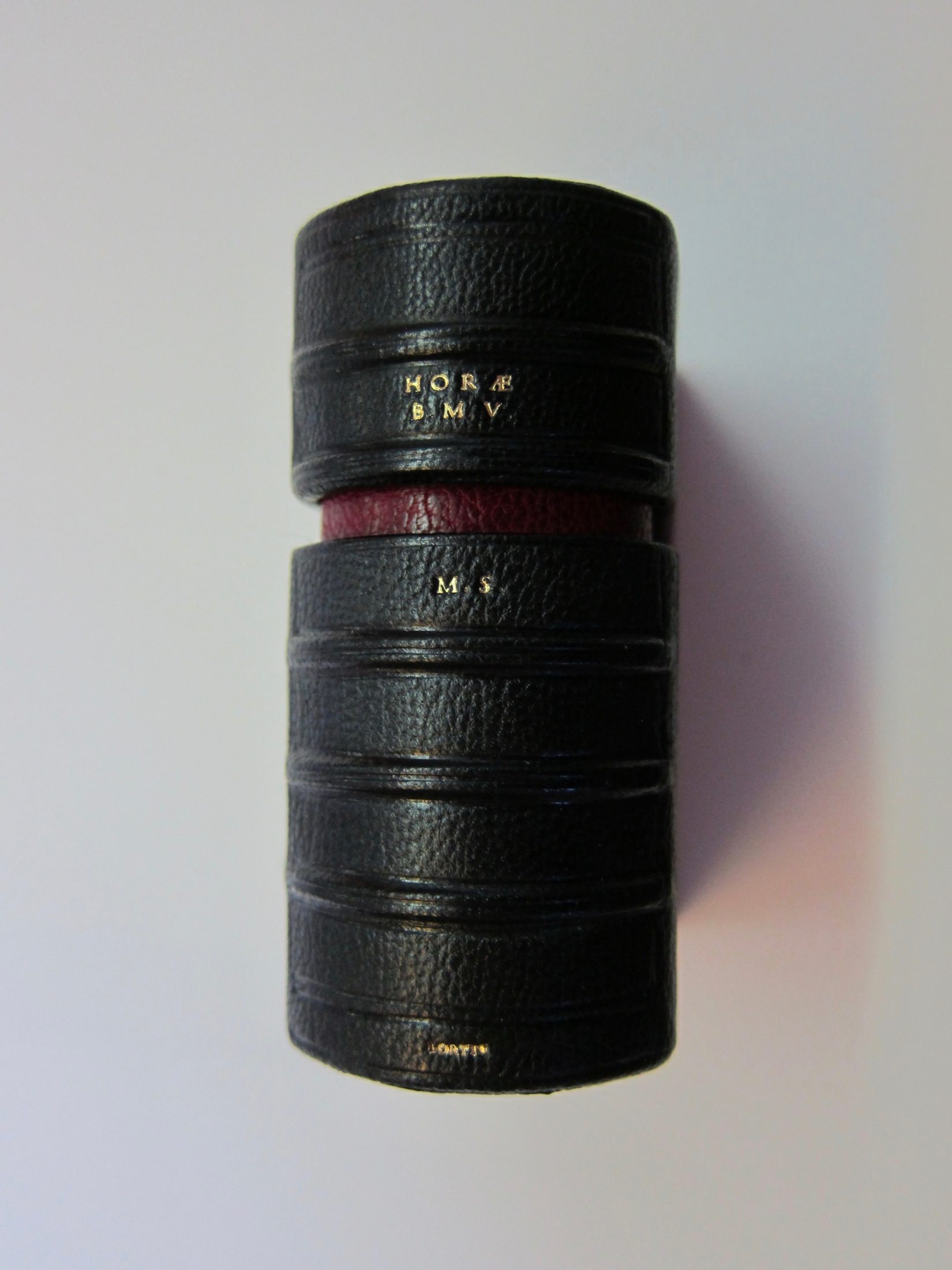 Facsimile leather binding and two-part case replicating the original miniature book. Every aspect of the original has been reproduced including the design of the tooling, the metal fittings on the covers, and the specially decorated book edges. The book pages were printed by Factum Arte, and the work is presented in a two-part goatskin presentation box with silk linings.