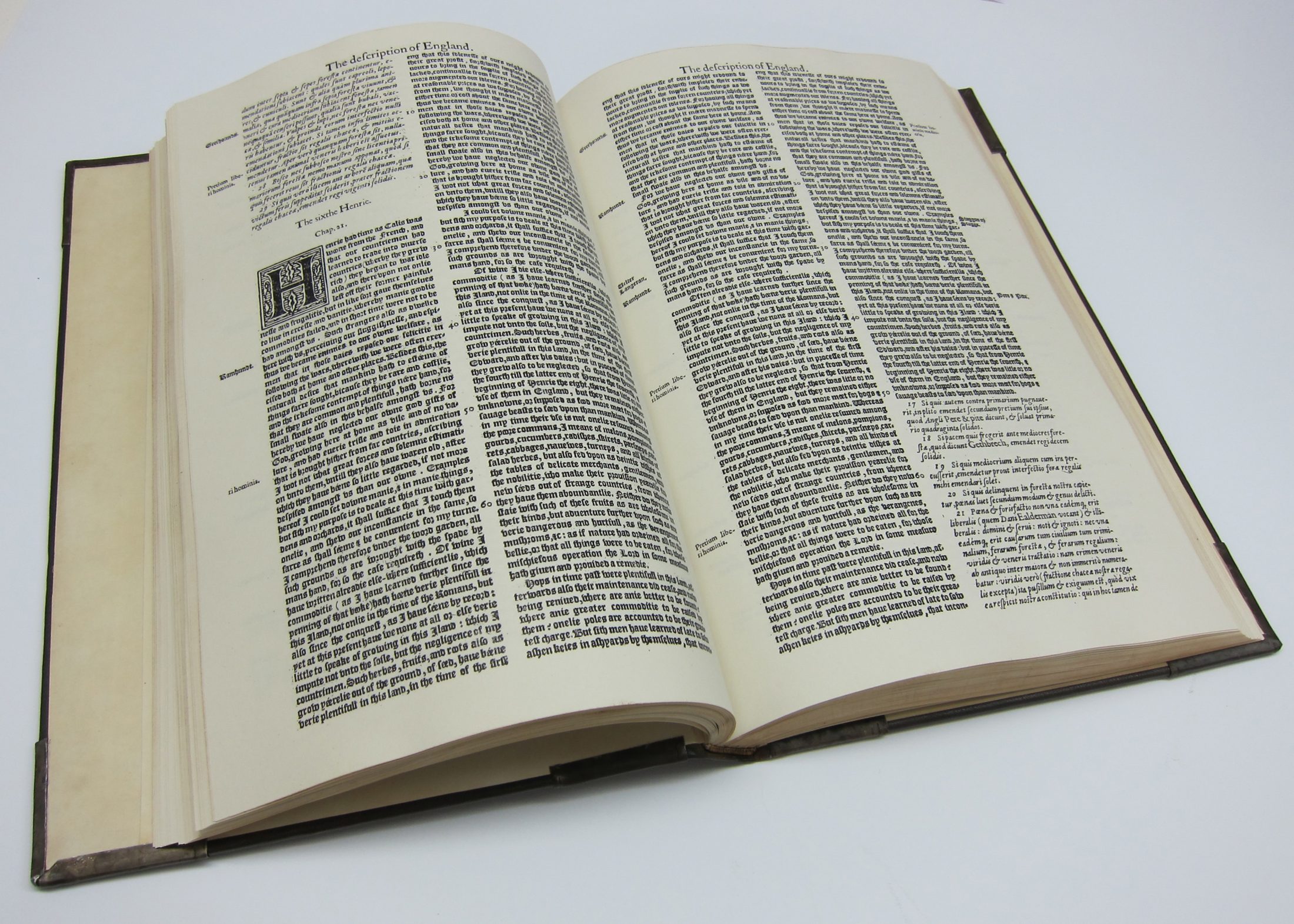 A leather bound book with engraved metal corners and centre panel created as a film prop. The book contained a few printed pages, the remainder were left blank.