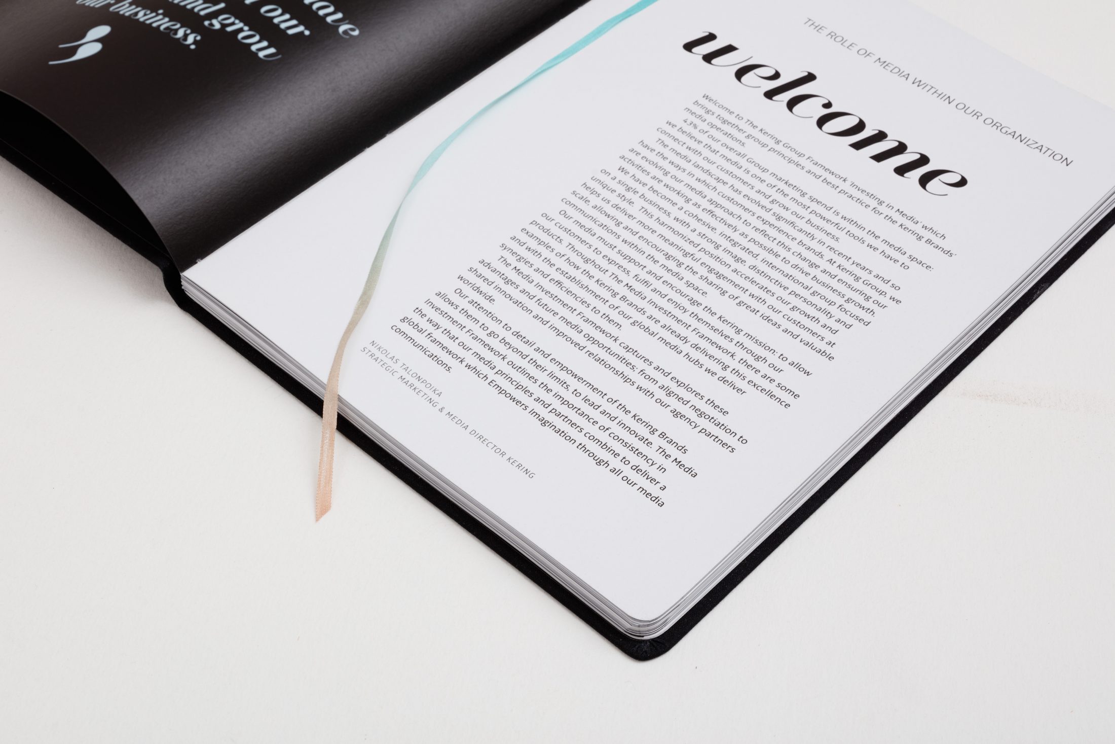 A simple casebound series of printed books incorporating a specially dyed book ribbon. Rounded corners.