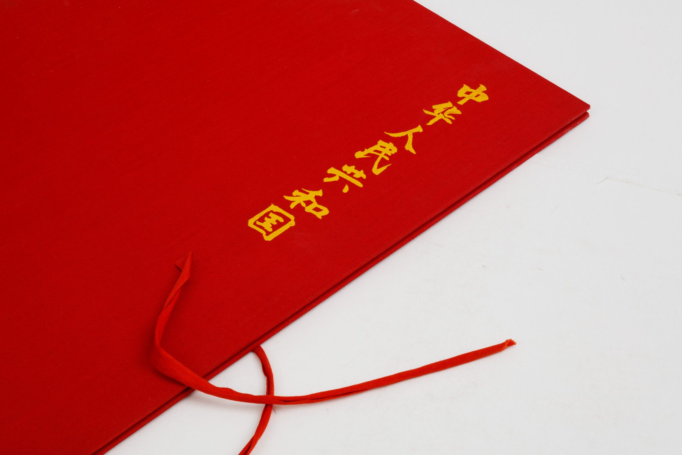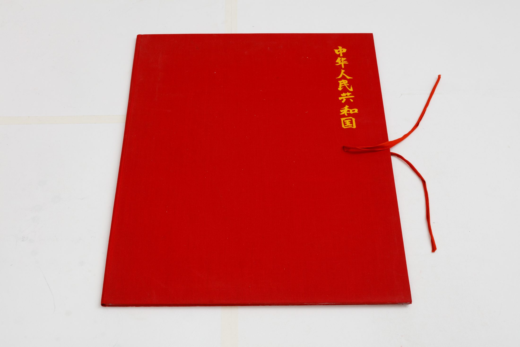 Cloth covered portfolio to contain a series of prints. The folio is lined with mouldmade paper and has a foil blocked title on the front cover.