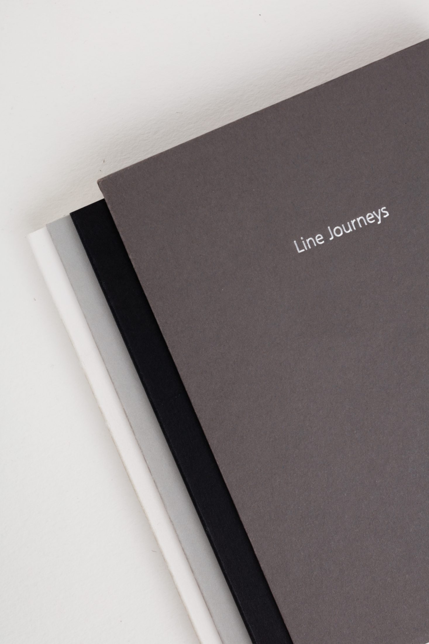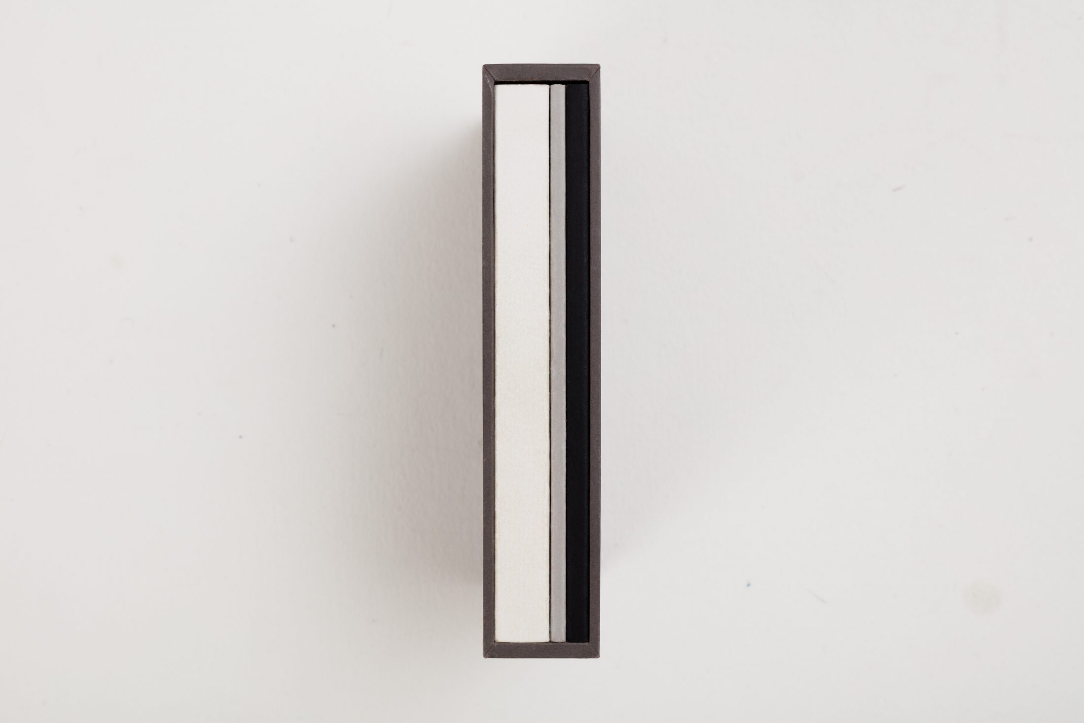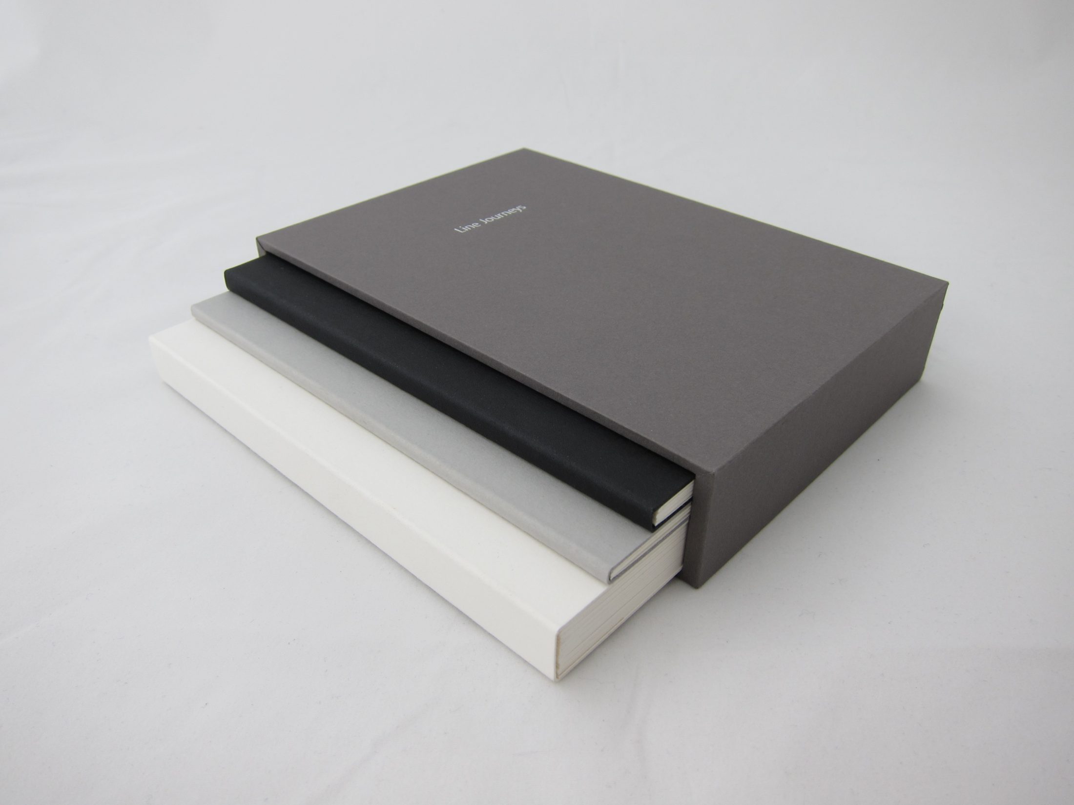 Boxed set of 3 digitally printed books containing pencil drawings printed onto Zerkall mouldmade paper. Each concertina format book is covered in a different shade of grey card with titles foil blocked in silver. The set of books is housed in a paper over board covered slipcase.