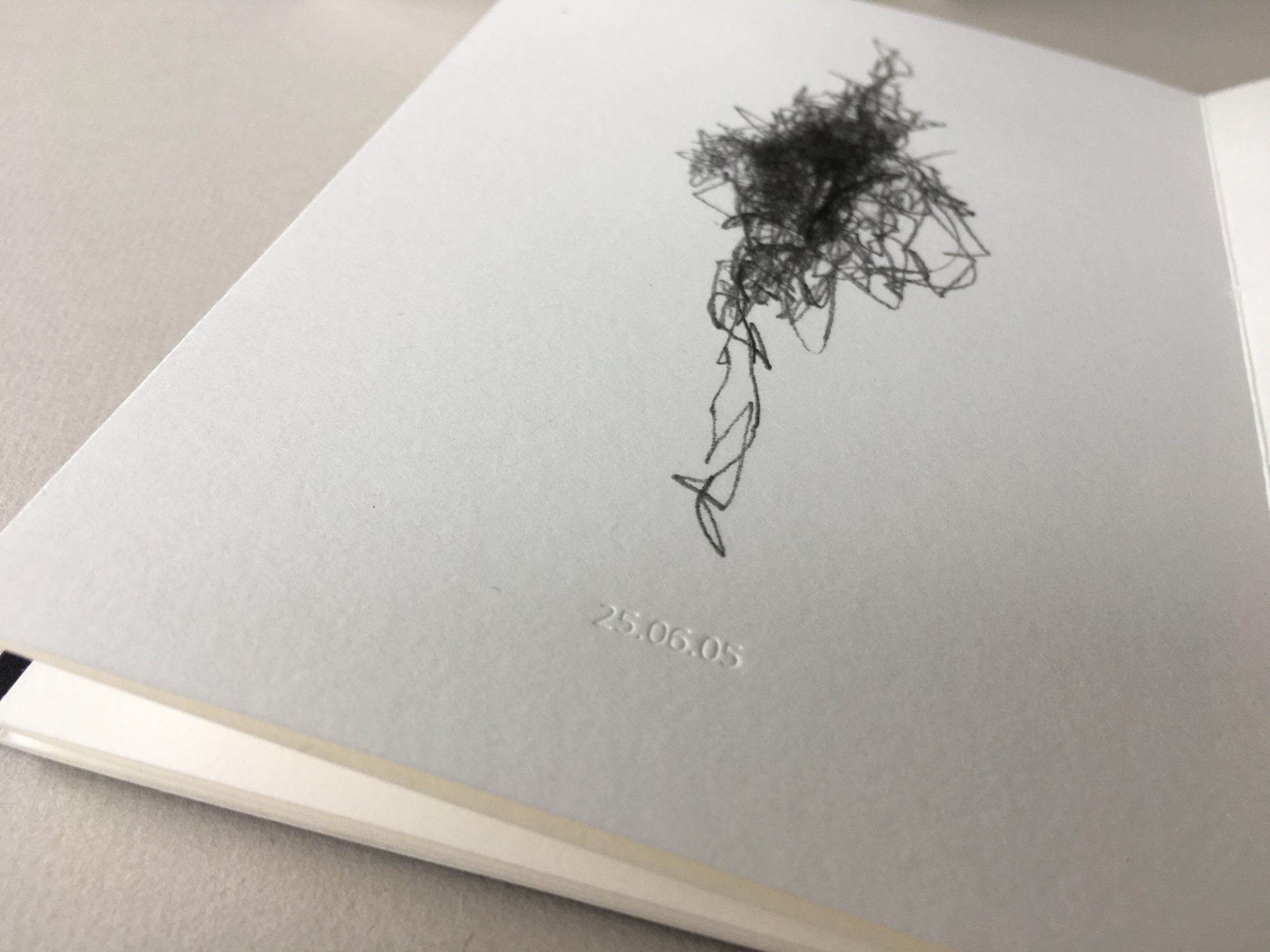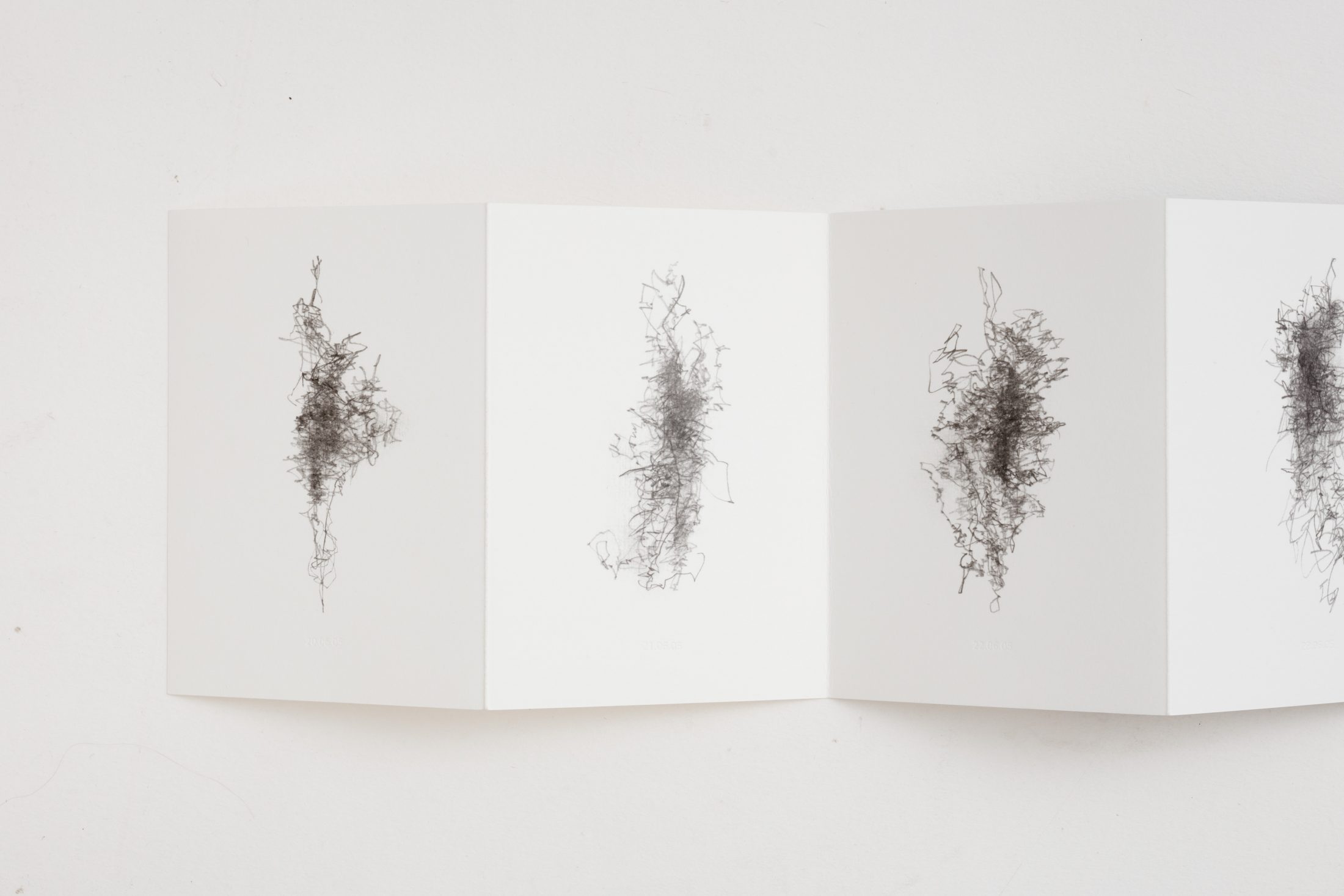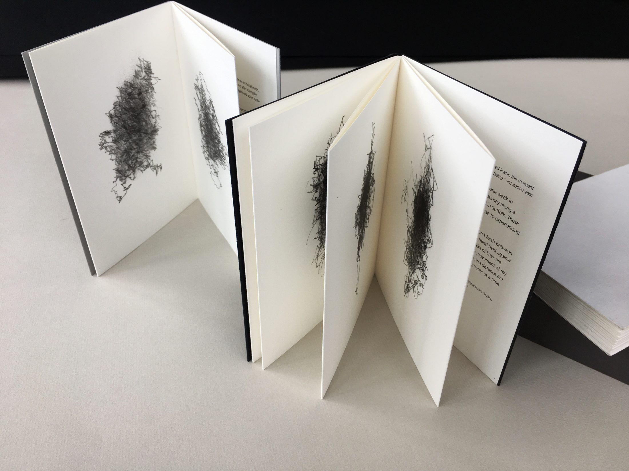 Boxed set of 3 digitally printed books containing pencil drawings printed onto Zerkall mouldmade paper. Each concertina format book is covered in a different shade of grey card with titles foil blocked in silver. The set of books is housed in a paper over board covered slipcase.