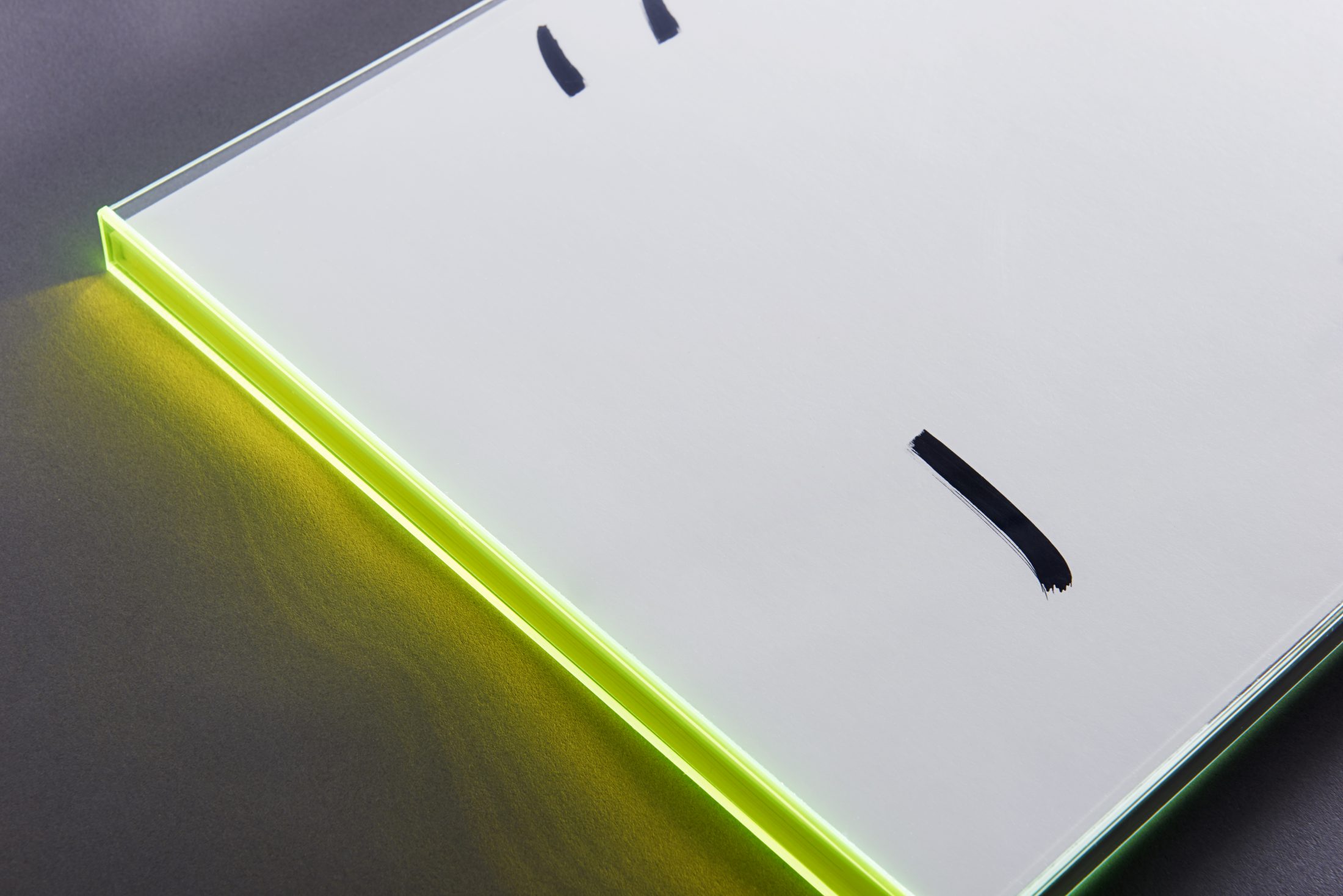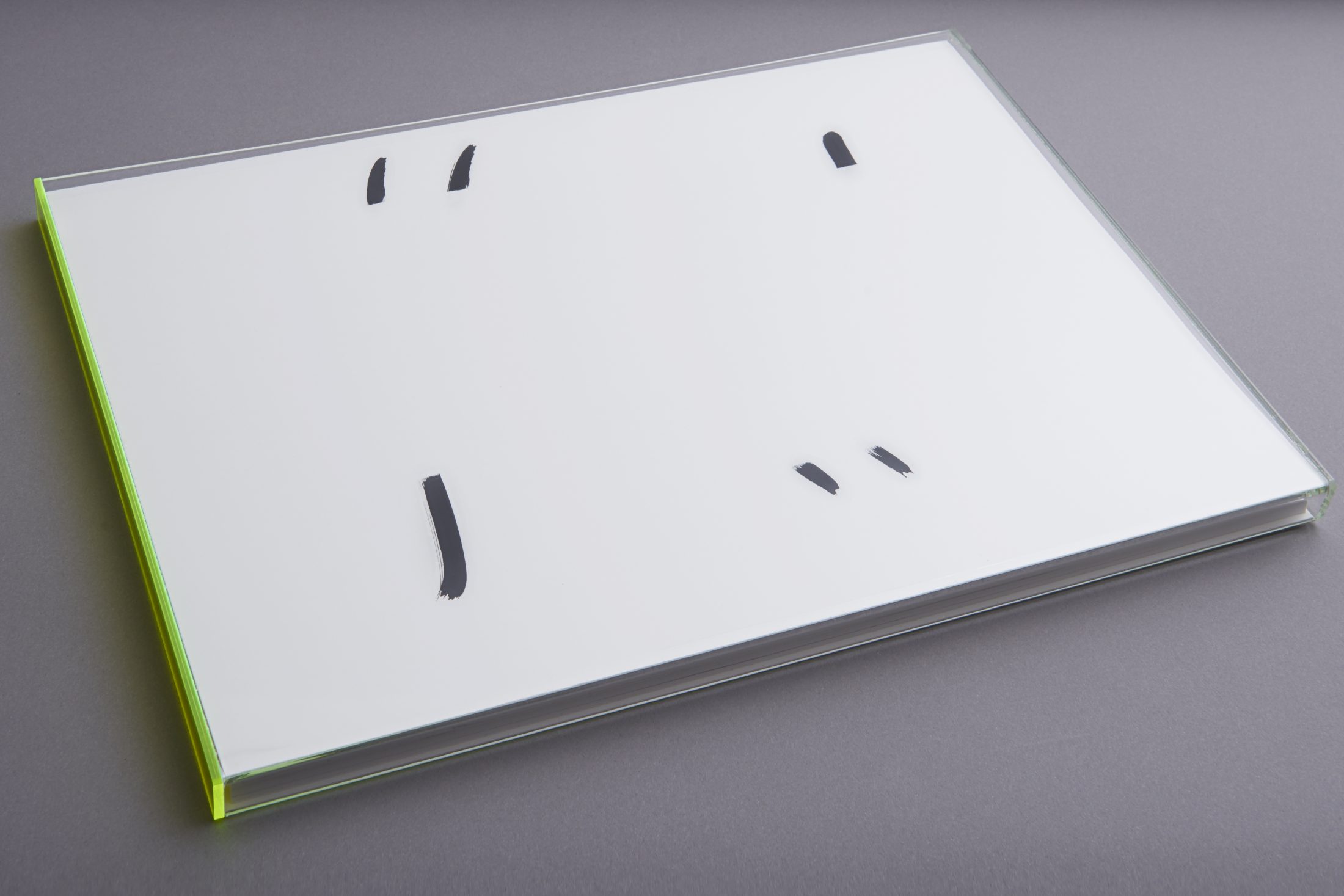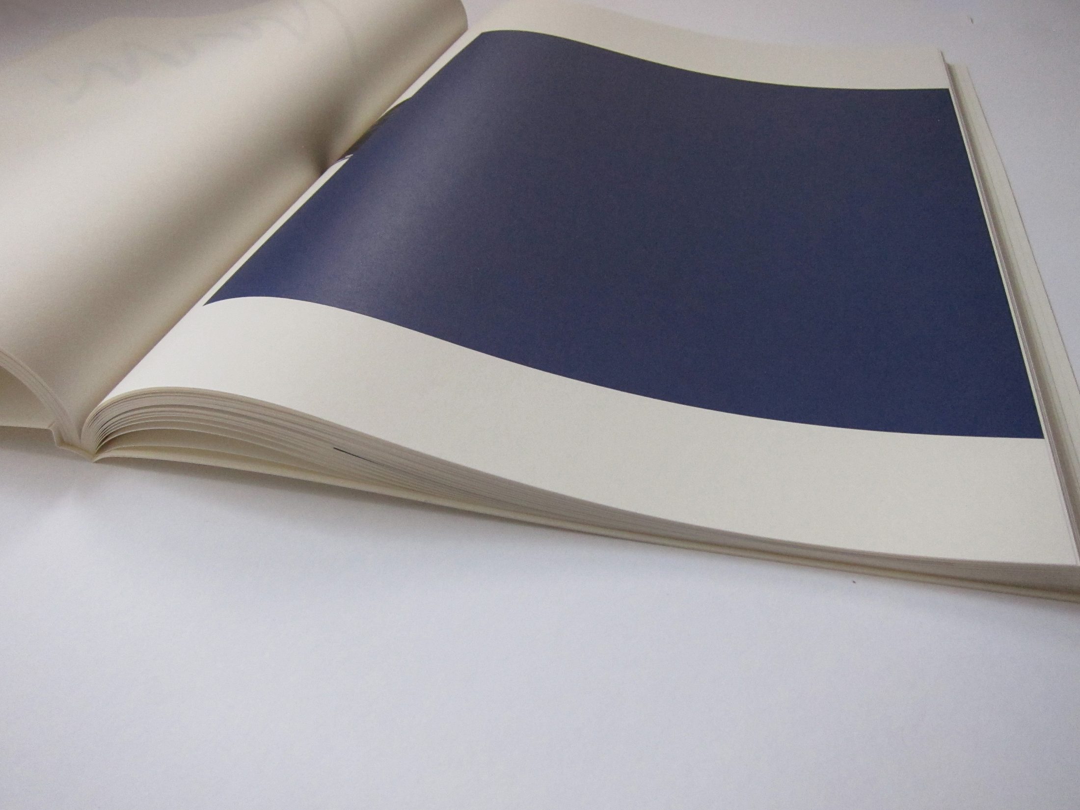 An artists’ book containing abstract Indigo printed images. The paper over board covers have all been hand painted by the artist, and the book is contained in a coloured acrylic slipcase.