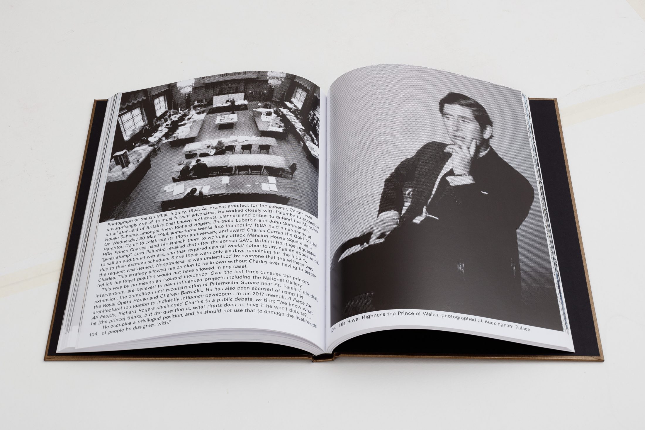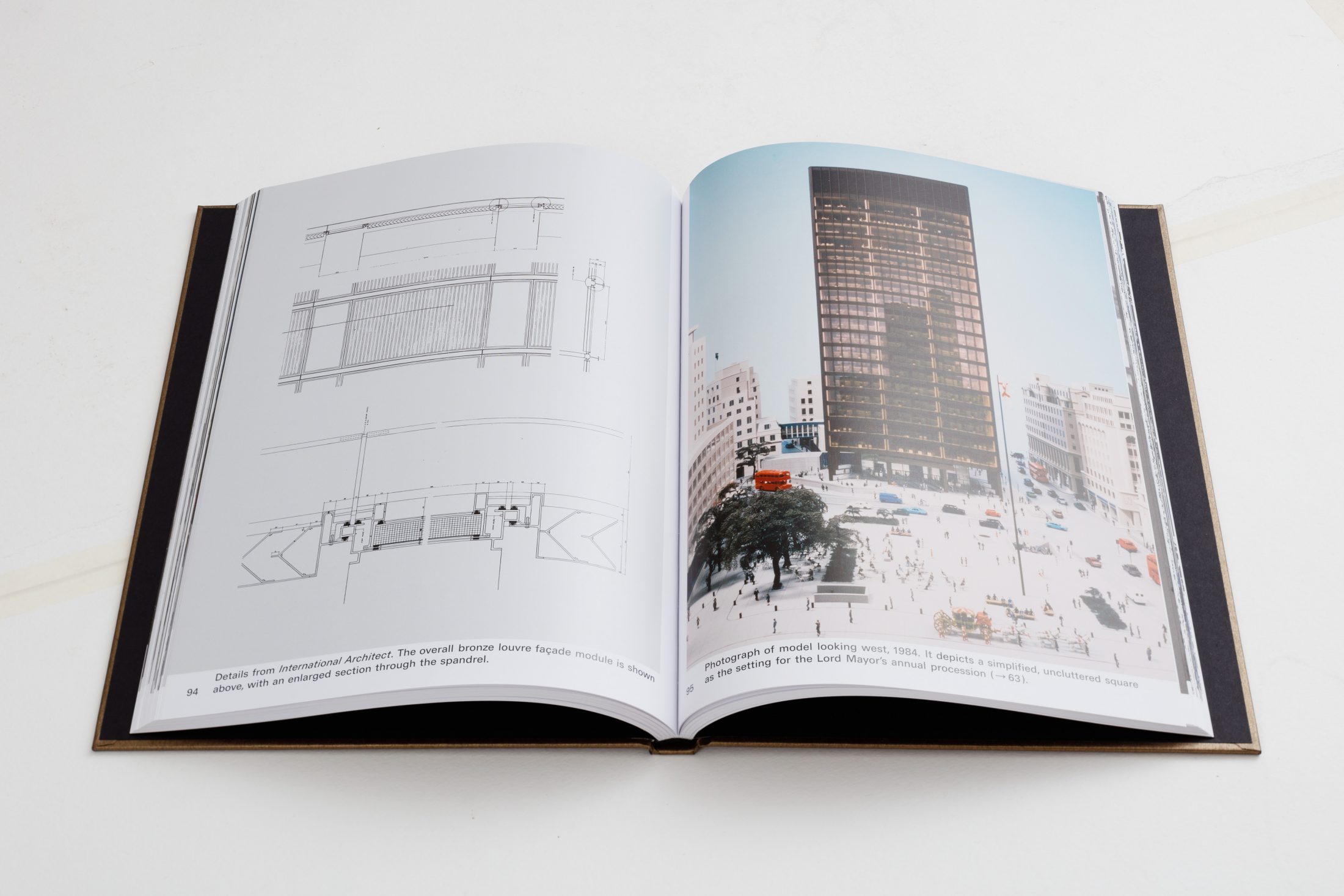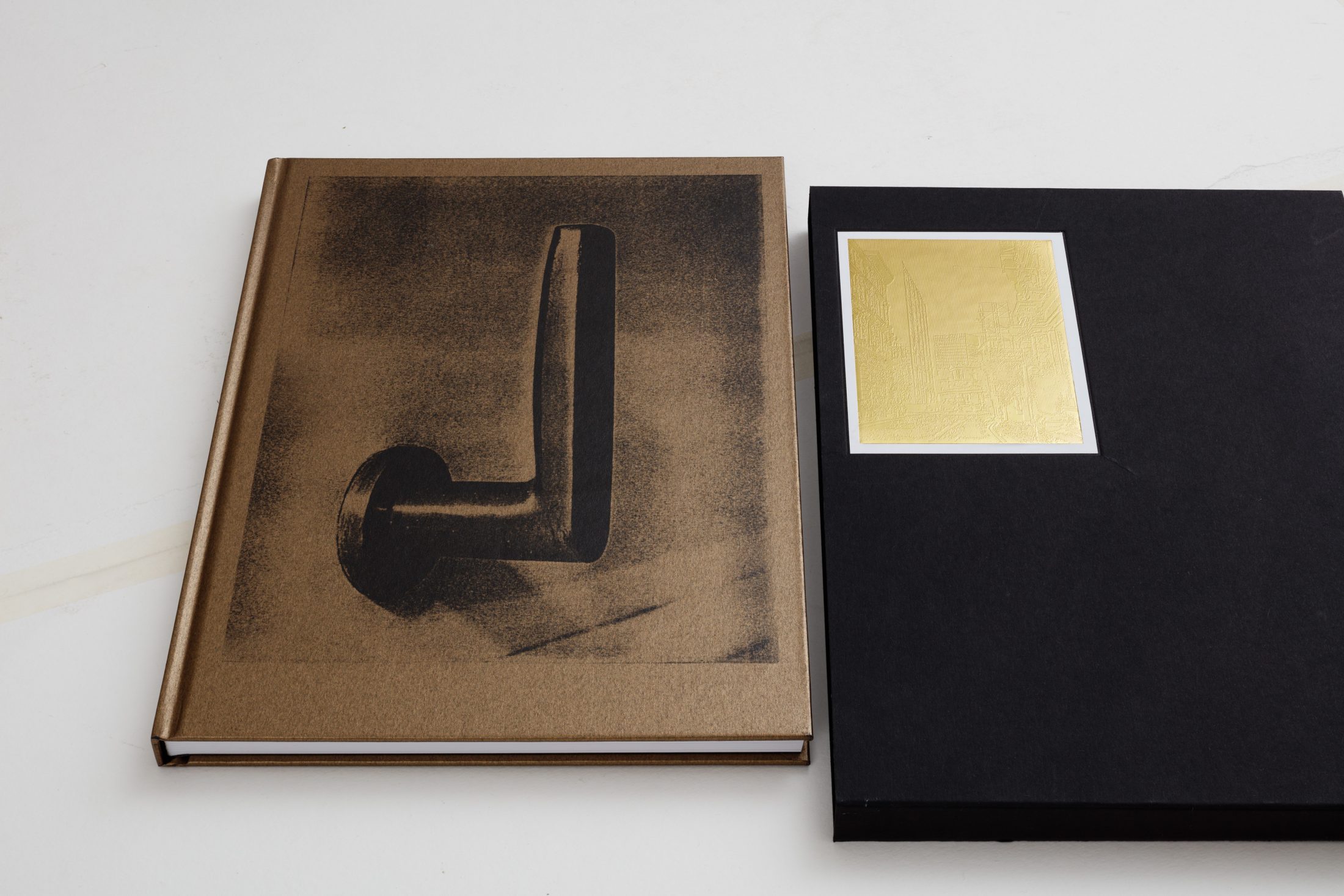Printed paper covered book with paper covered board slipcase. The solid gold panel on the front of the slipcase is foil blocked with a multi-layered design and inlaid into a recess.