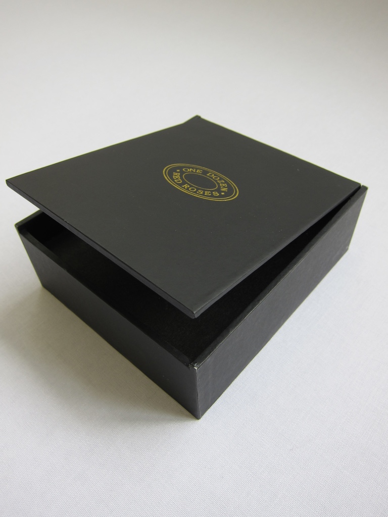 A box with a hinged lid for an artist’s edition containing two crayons created by the artist from the remains of rose petals and stems that formed part of an installation at the ICA.