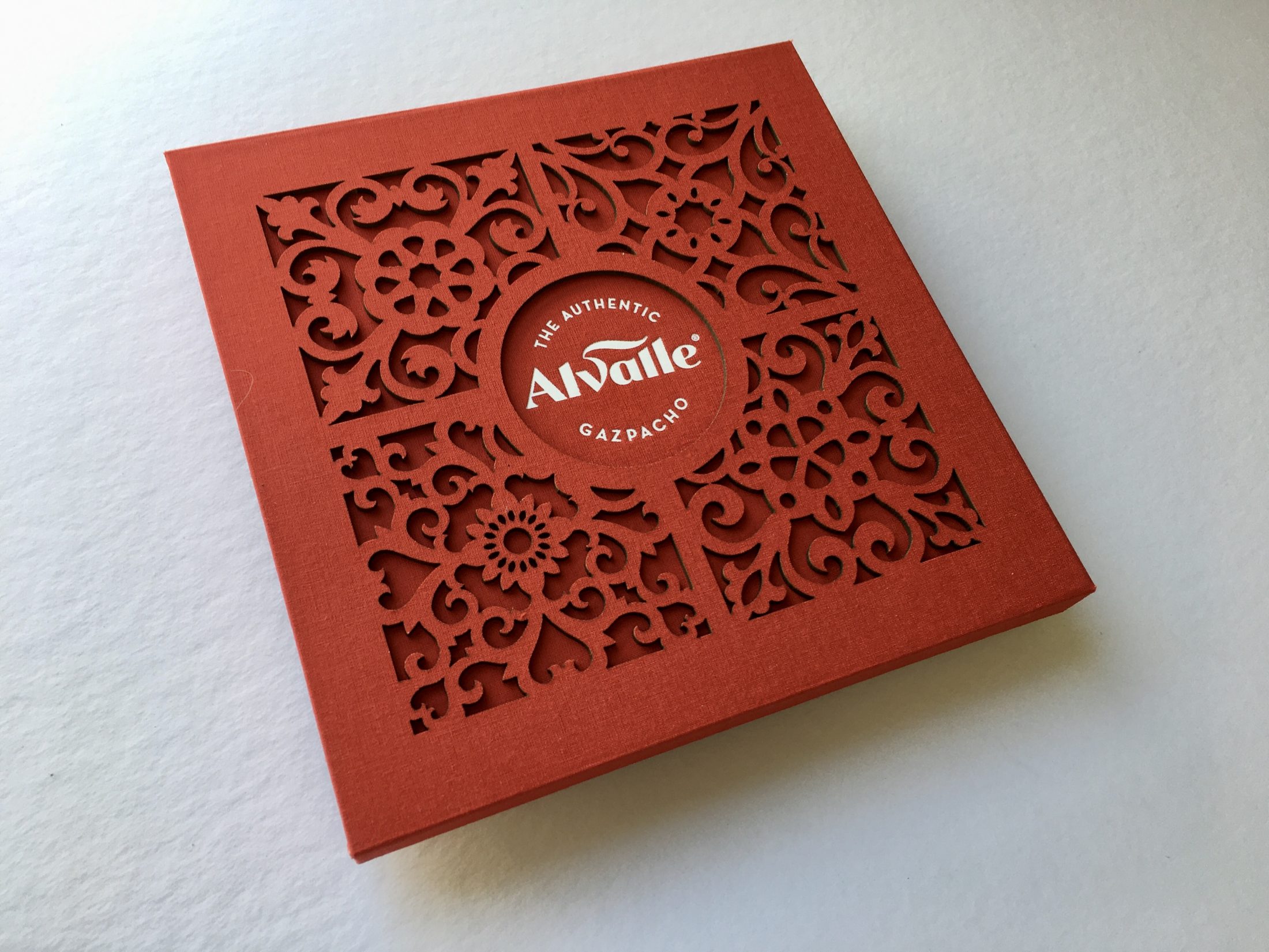 A series of promotional books with slipcase. The slipcase has an etched design on the front cover revealing the book inside. The pages of the book are indigo printed and section sewn. The cover has a foil blocked title.