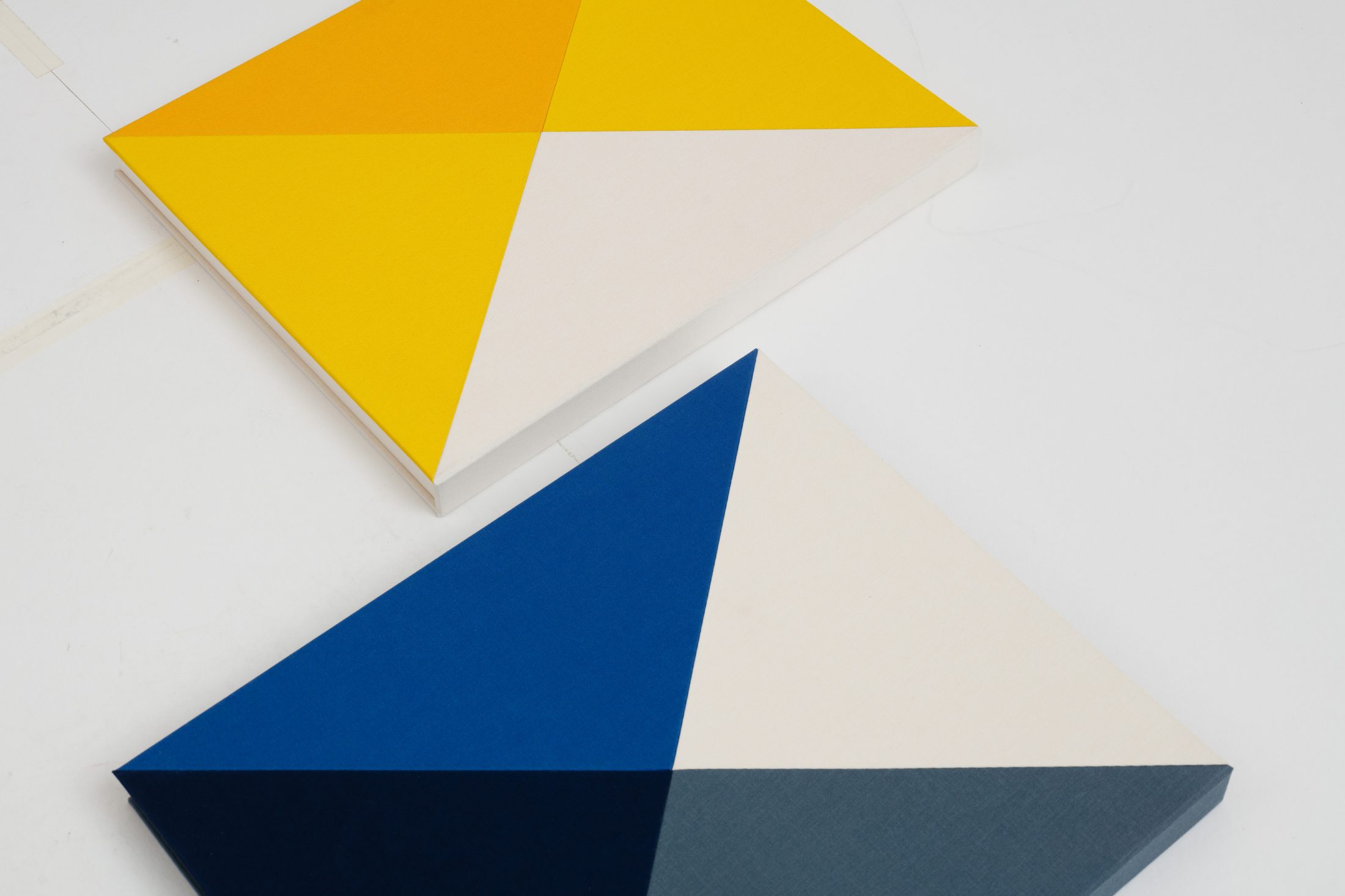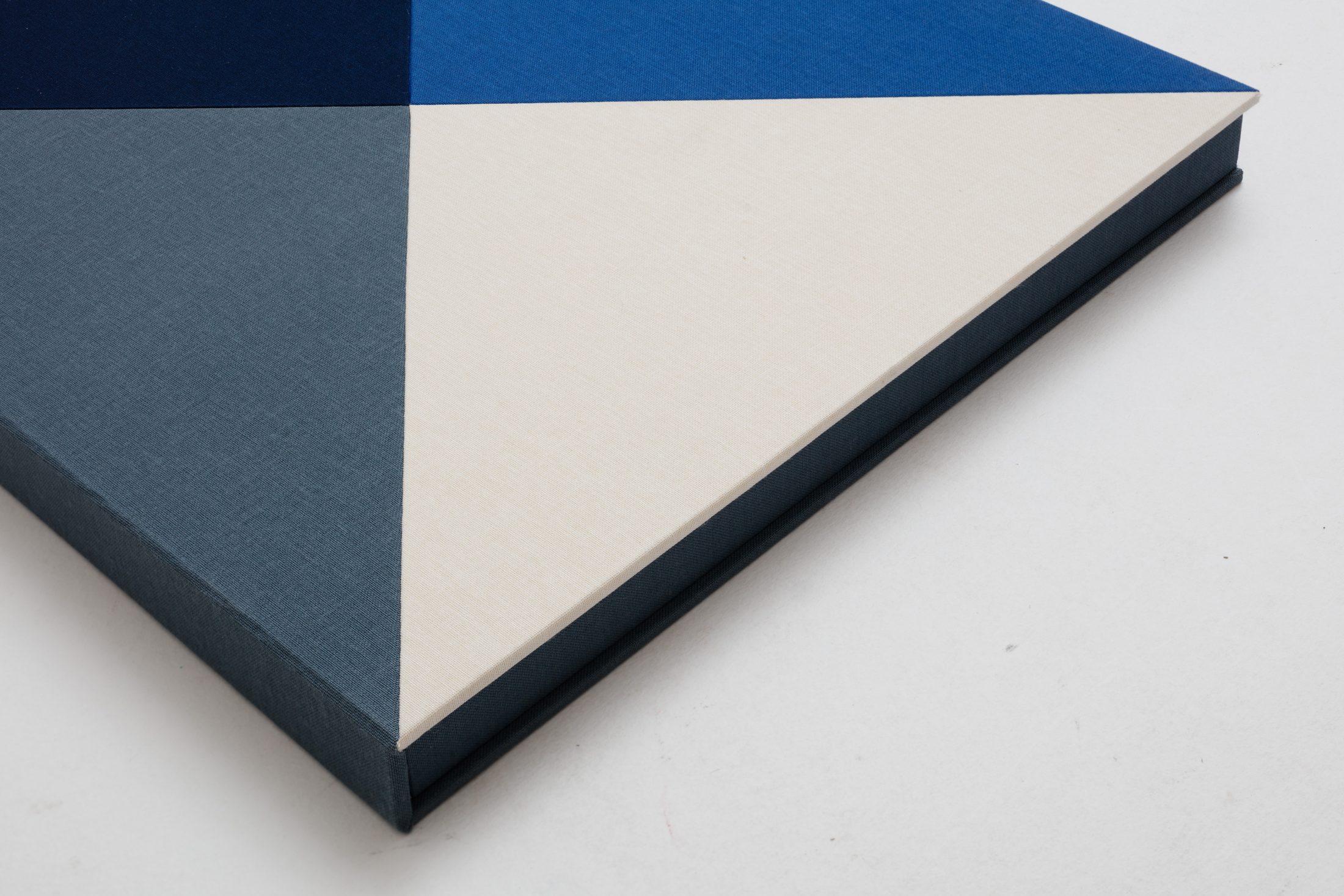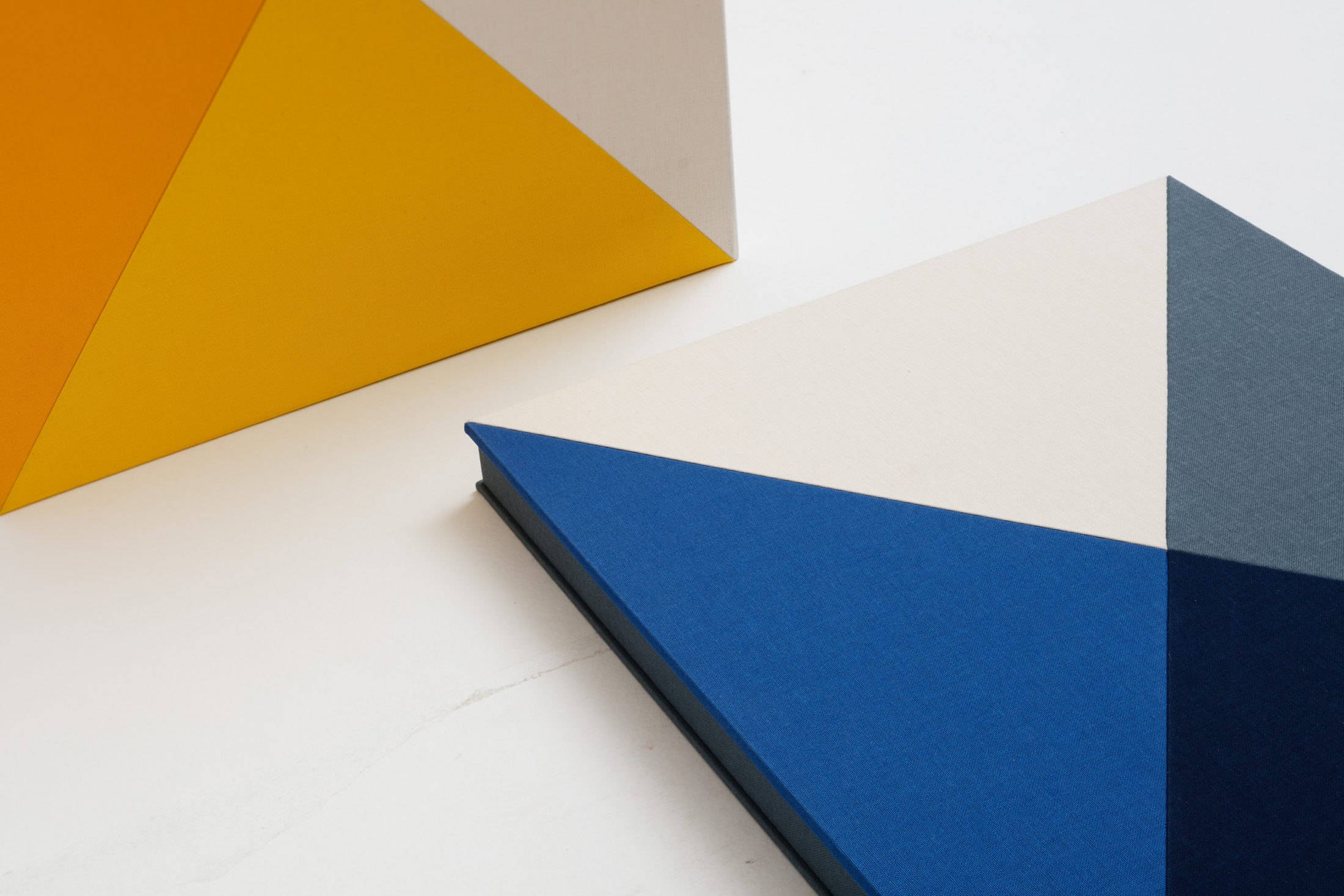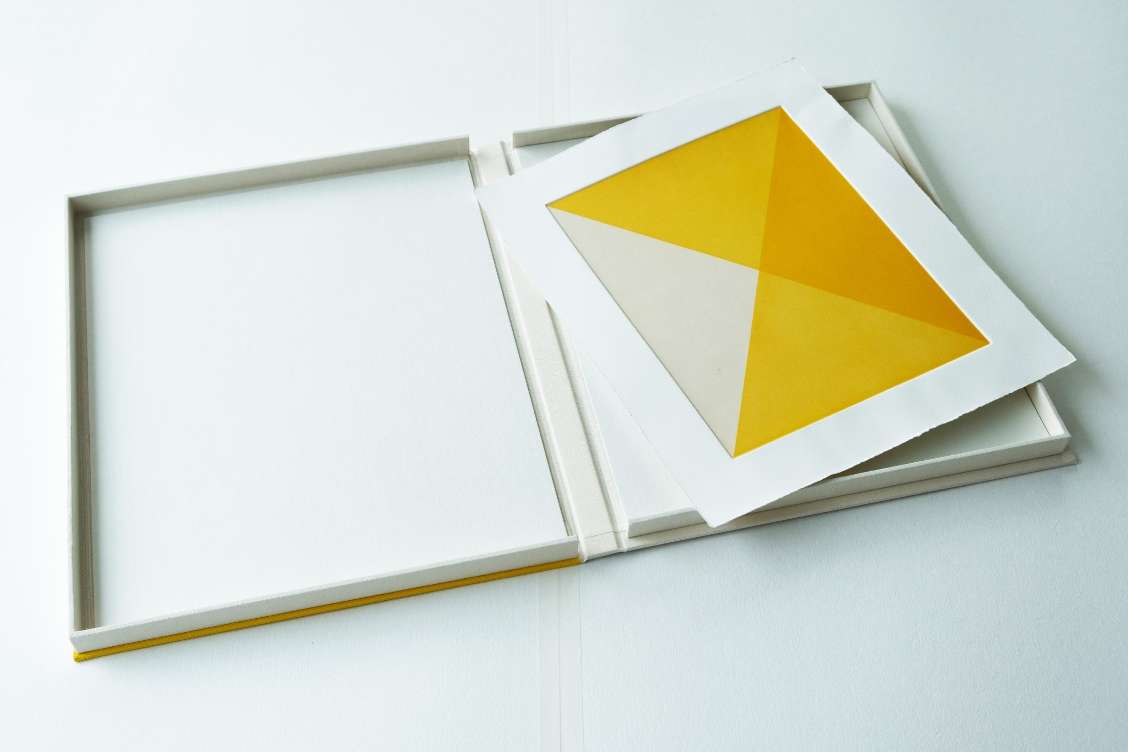 Solander boxes created for two different series of limited edition etchings by the artist. The boxes are covered in four different coloured cloths in keeping with the design of the artist’s work. The boxes are lined with mouldmade paper.