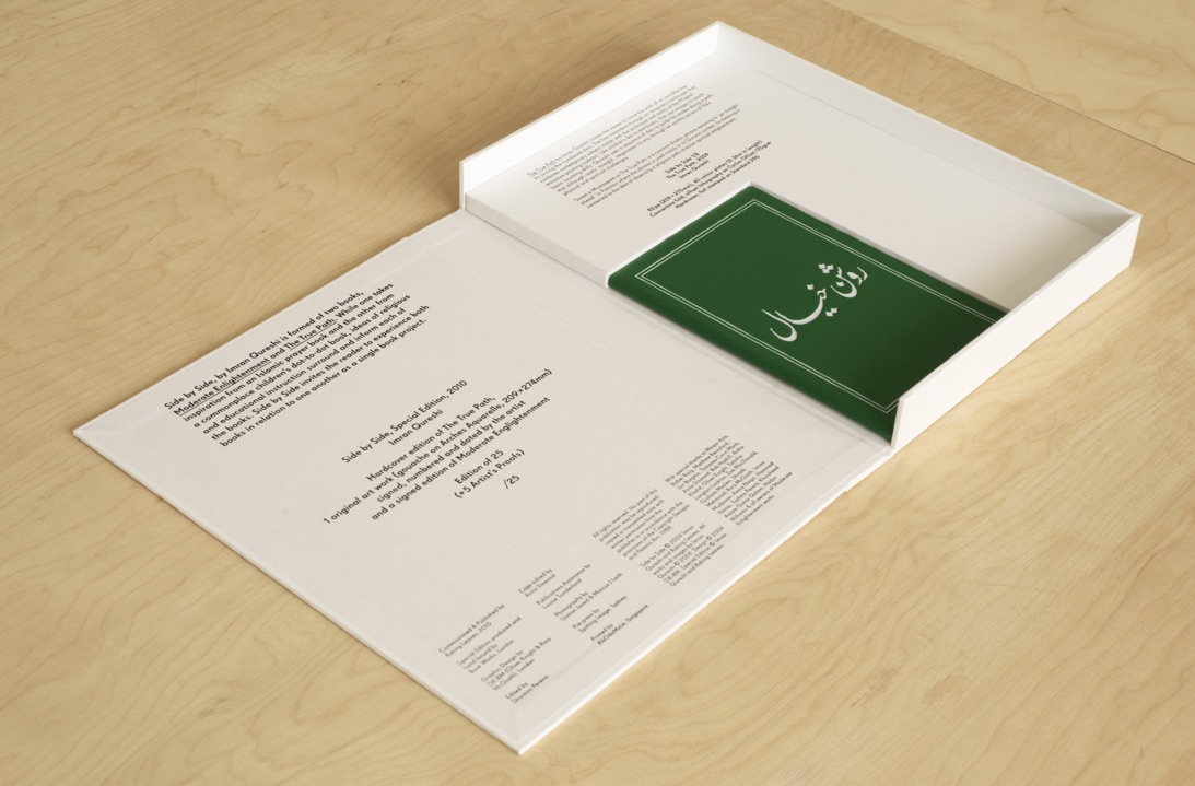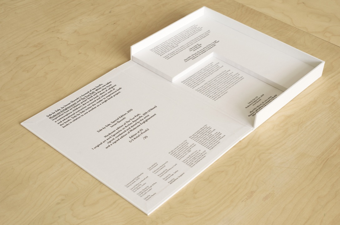 Two artists’ books with custom made case to fit both copies. Designed by OK-RM, the printed interior of the case supplies a commentary to its contents.