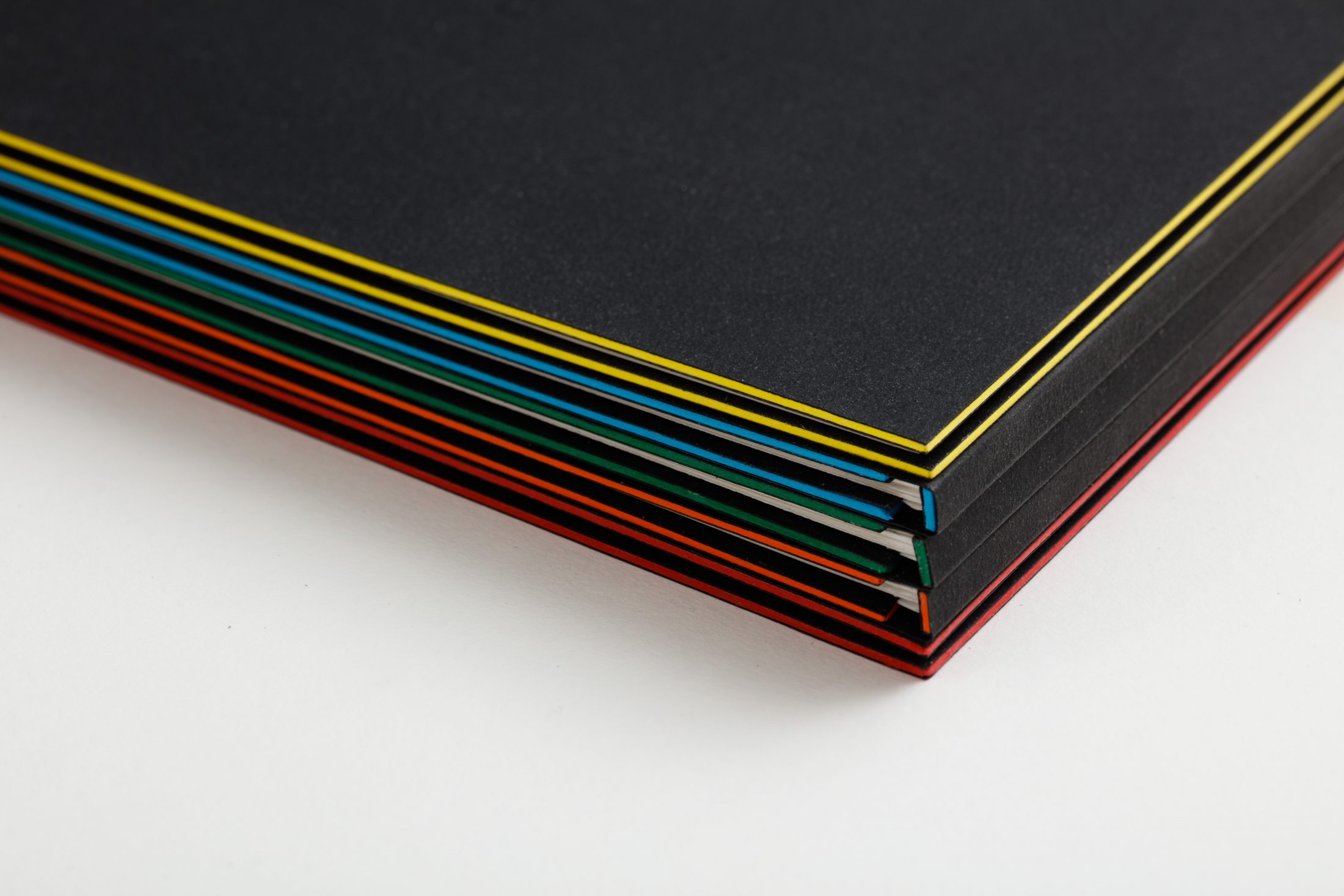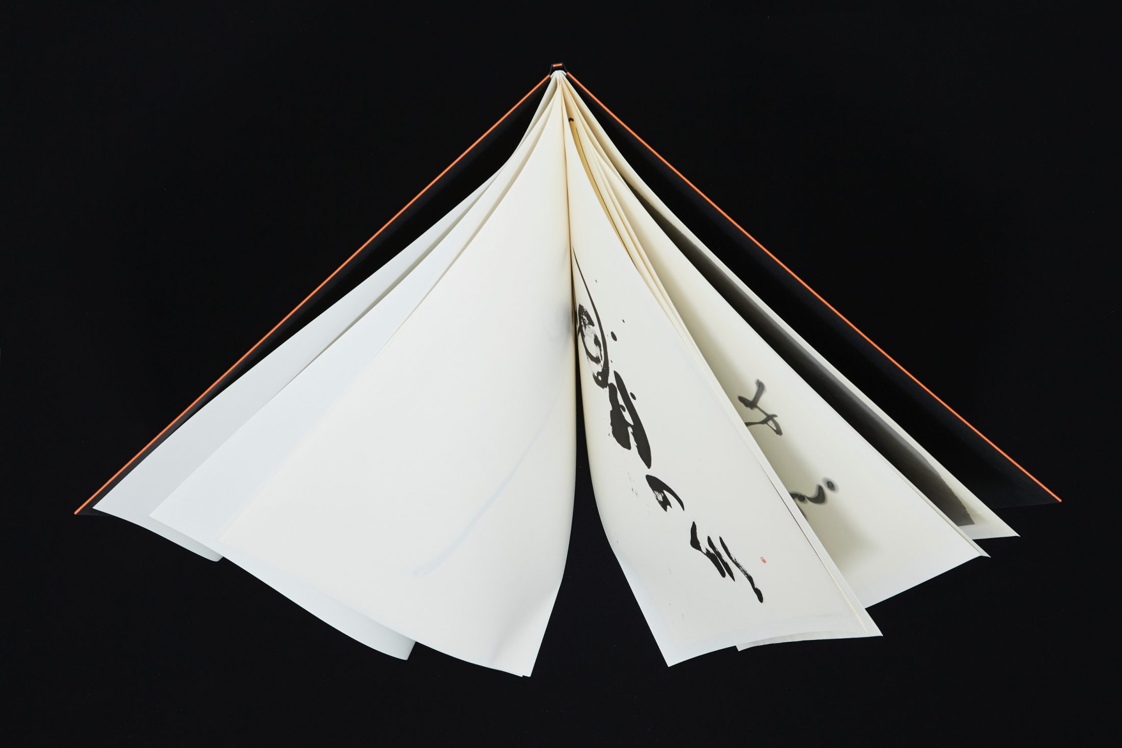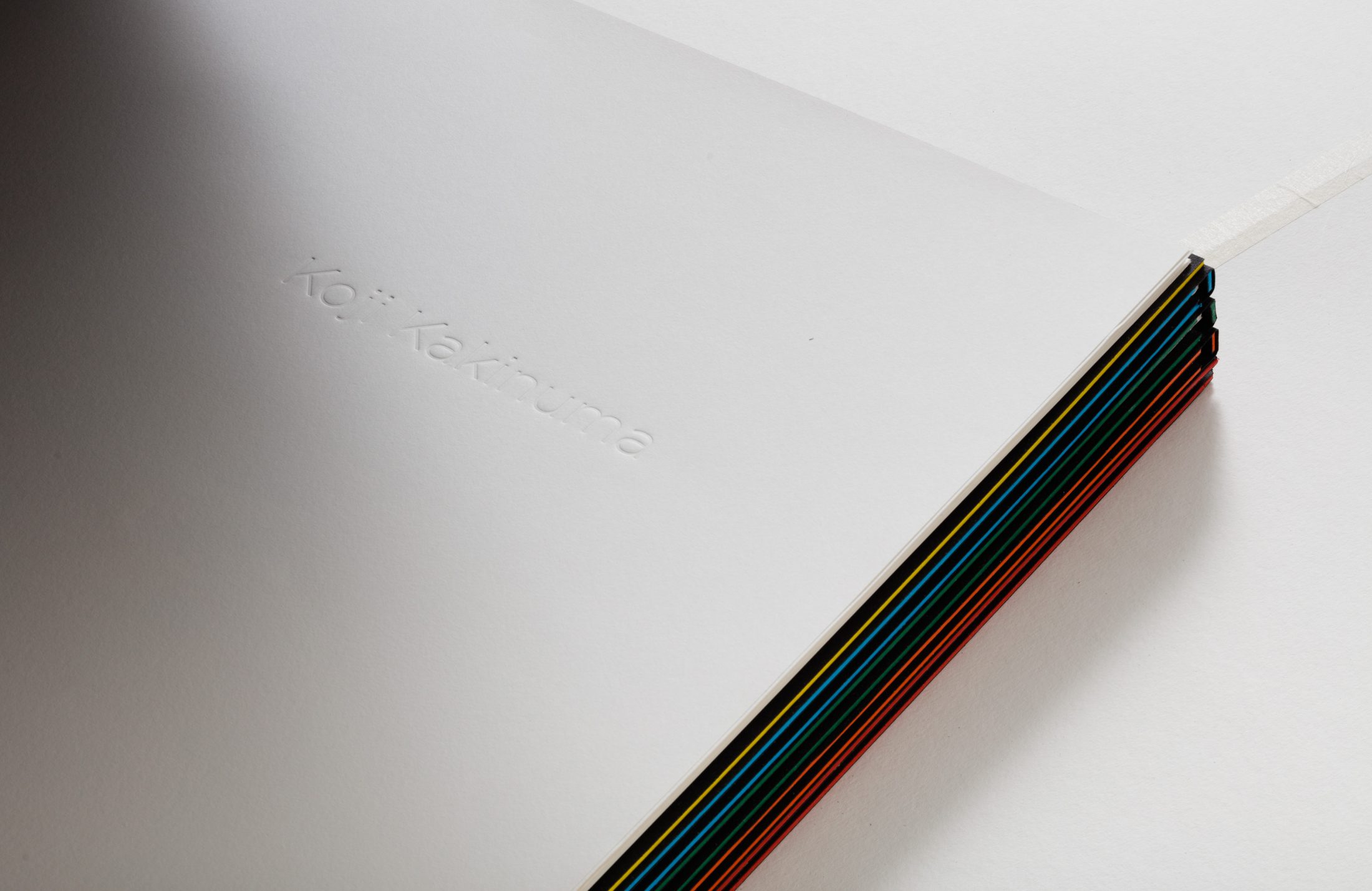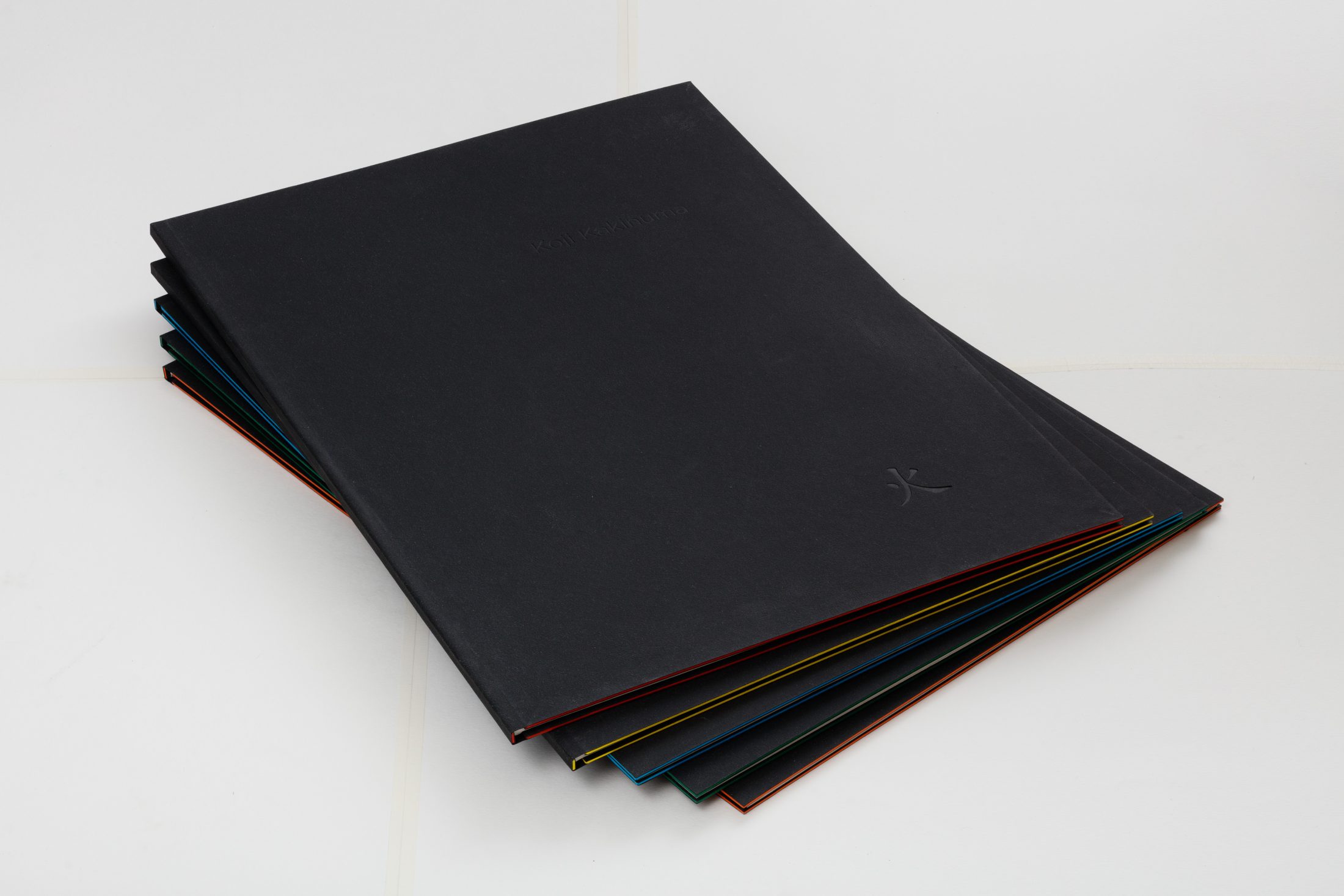 Unique series of five different books based on the Five Elements each containing original calligraphy by the artist. The bindings were covered using different layered materials revealing coloured cores. Letterpress printed text pages and blind debossed title.
