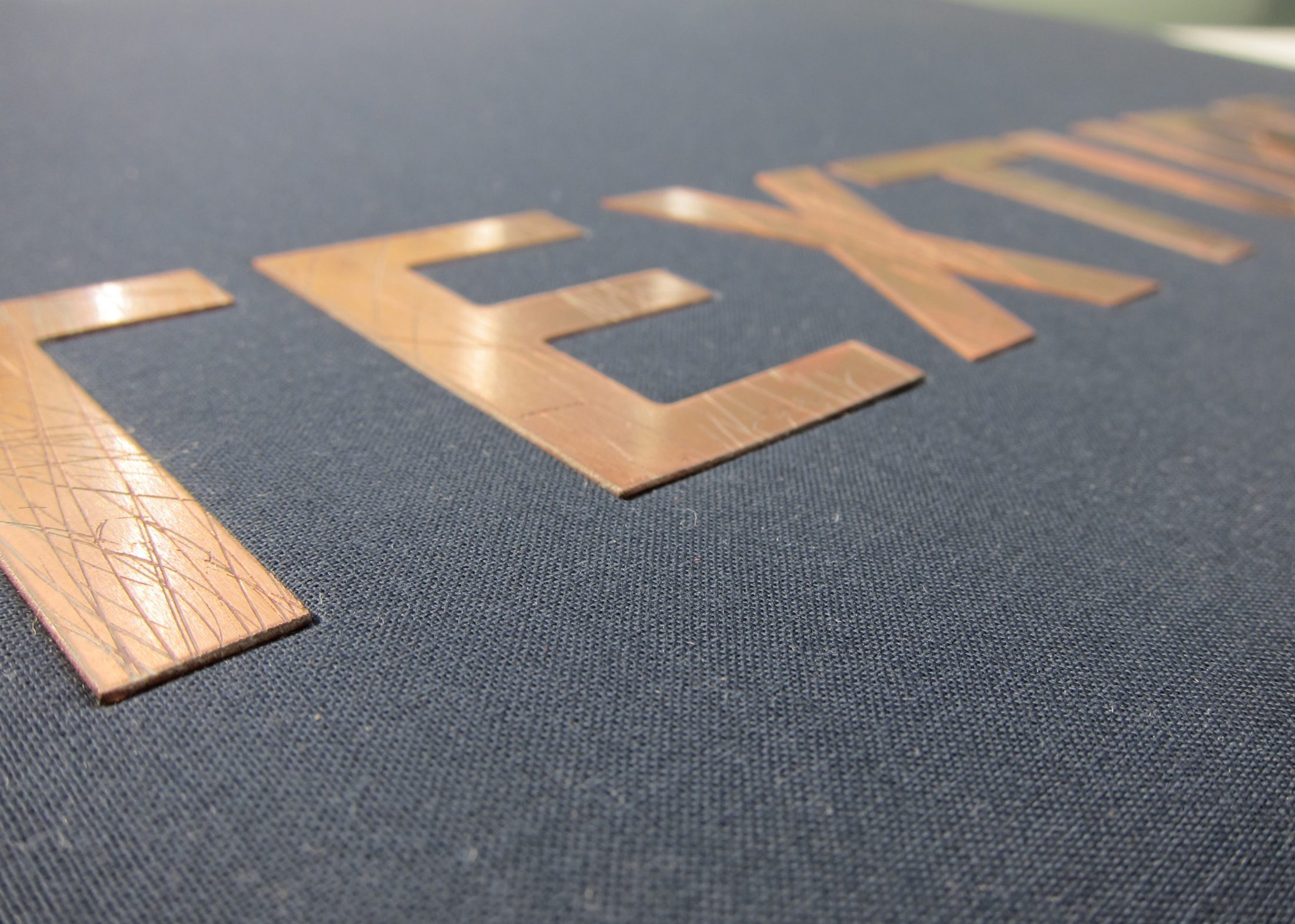 A cloth covered solander box with paper linings to contain a series of prints. The title letters are cut from pieces of copper and inset into the front cover.