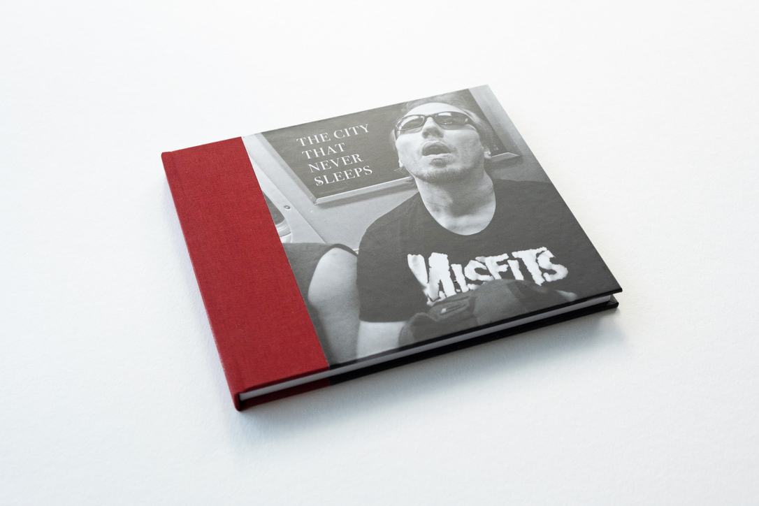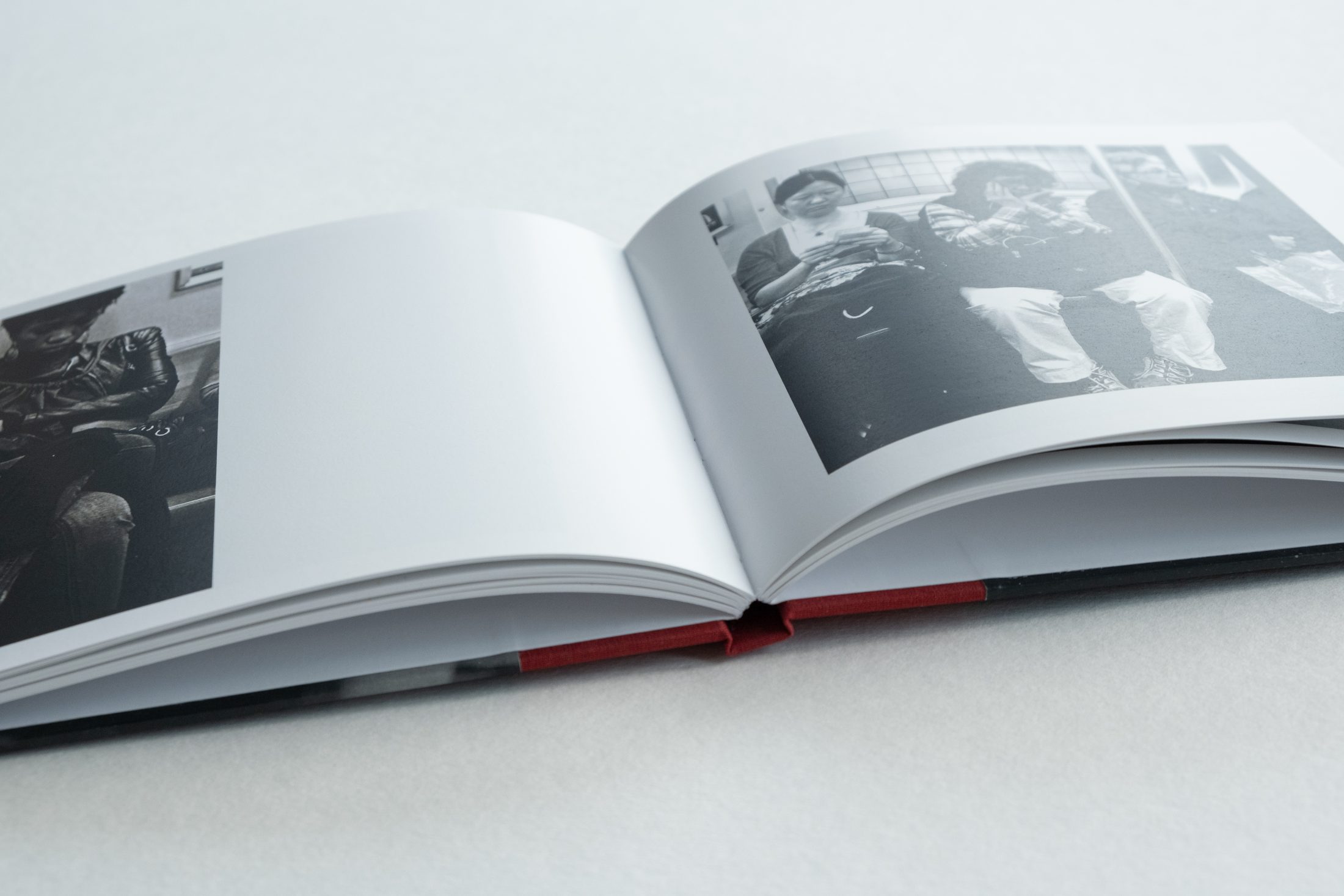 A digitally printed, section sewn, casebound book designed by the photographer. The cover is quarter bound in bookcloth and printed paper, with foil blocked title on the spine.