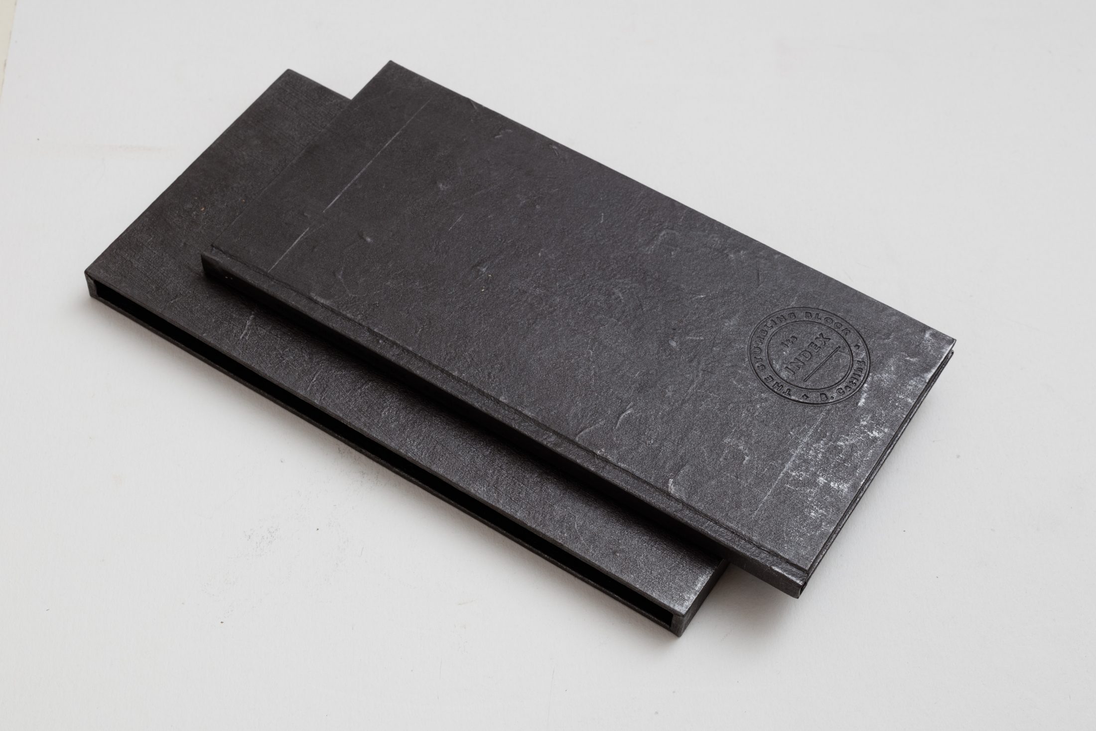 Designed and printed letterpress onto Zerkall mouldmade paper at Book Works. The covers are impregnated with hand-worked graphite and the title is blind debossed into the cover. The special edition features endpapers covered with slightly fractured sheets of pewter leaf, and comes with a slipcase.