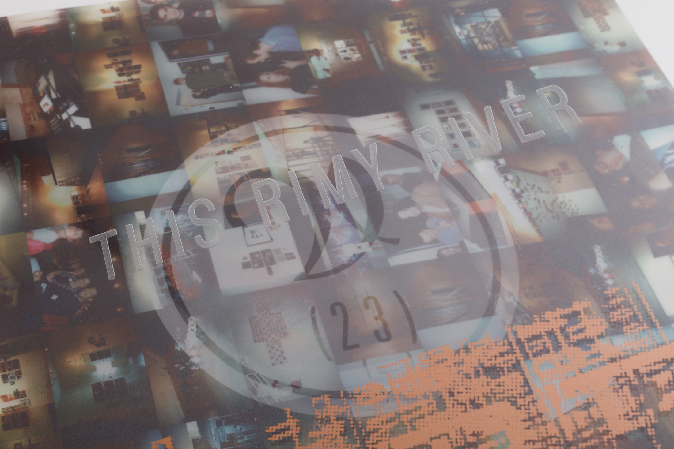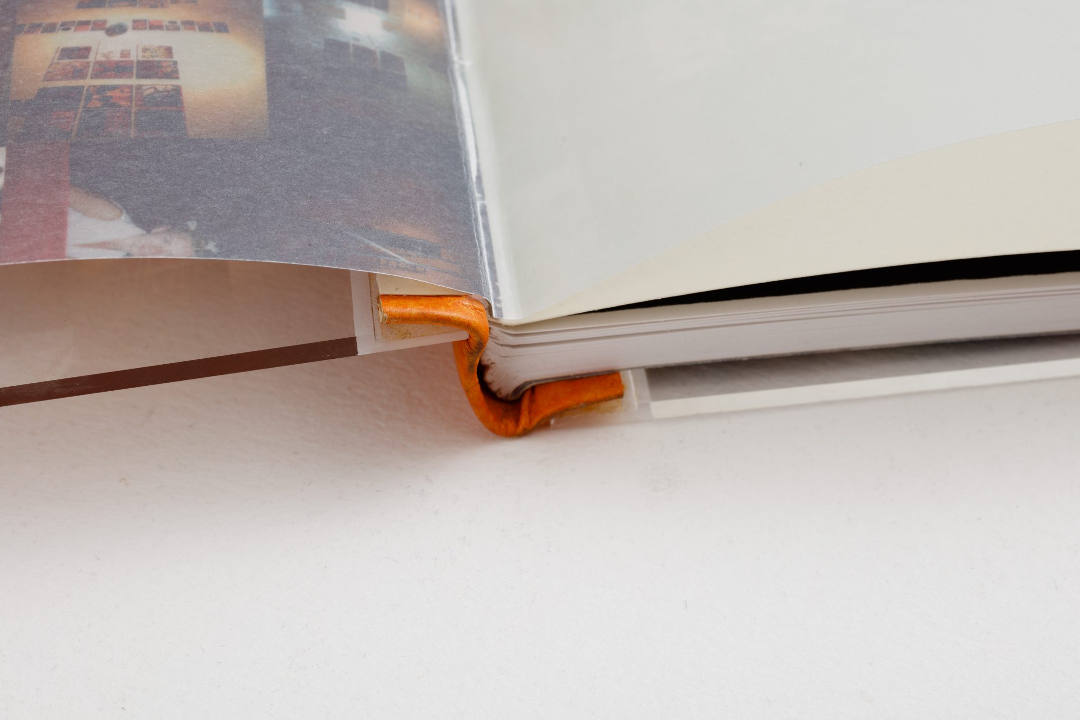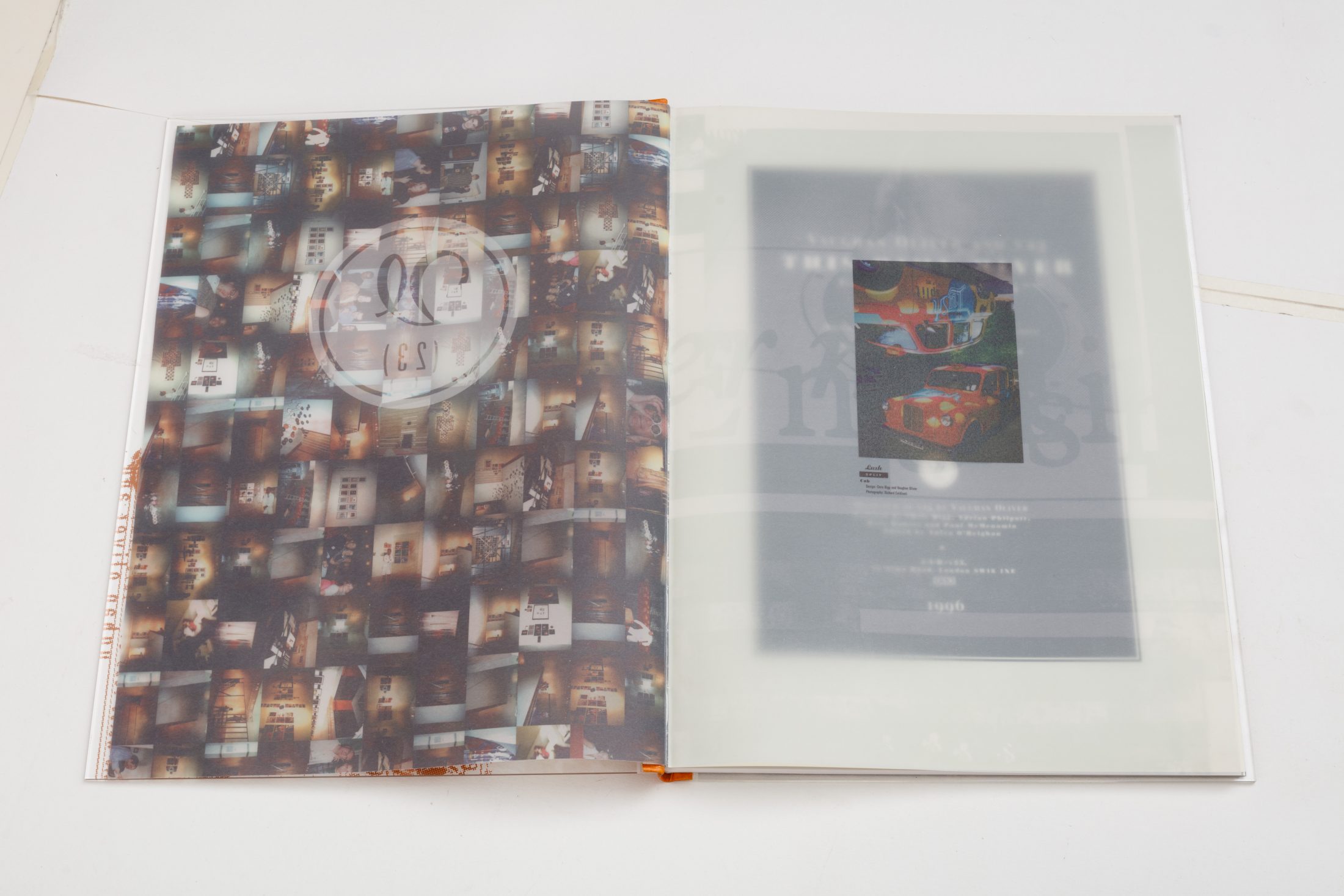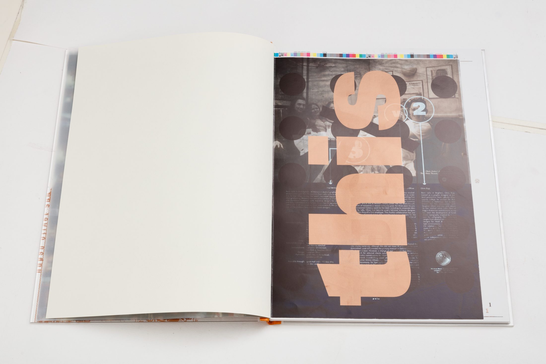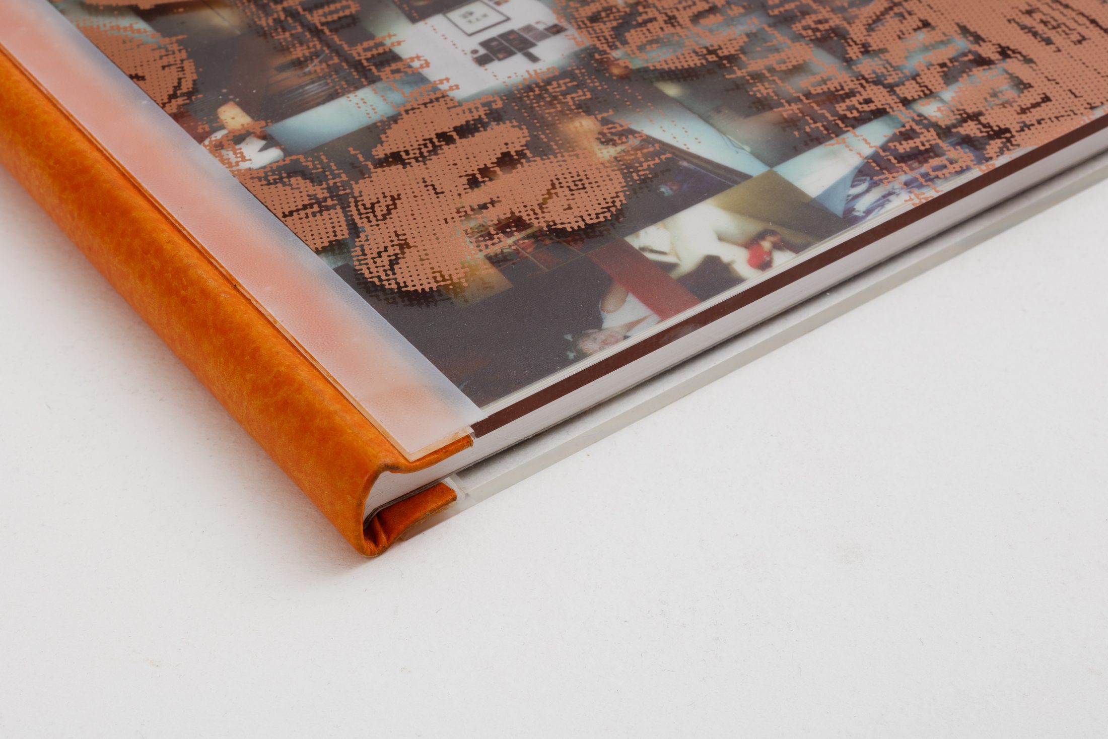 Book celebrating some of the work created for the record label. The edition was bound by the Studio using clear perspex covers which are screen printed on the outside and engraved on the inside. Specially dyed orange calfskin is used on the spine which is then attached to the perspex covers along a rebated area at the hinge. The book is housed in a screen printed, crushed velvet covered slipcase.