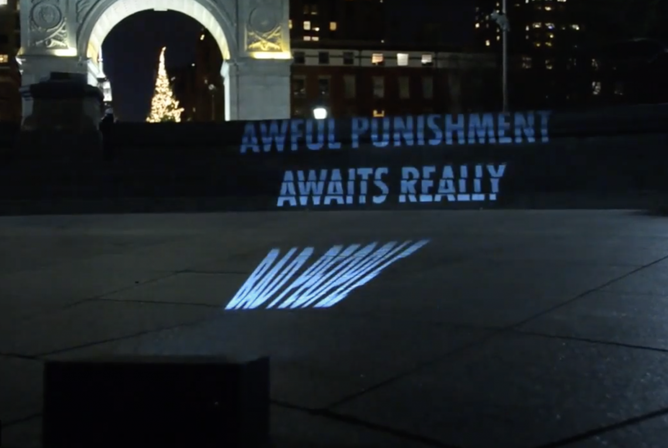 Specially produced artist’s multiple to house the free-standing miniature projector showing 32 of the artist’s original animations. The outer case is a paper over board construction that allows the projector to be adjusted by means of various dials, and an access point for recharging,. Produced in an edition of 12 copies.